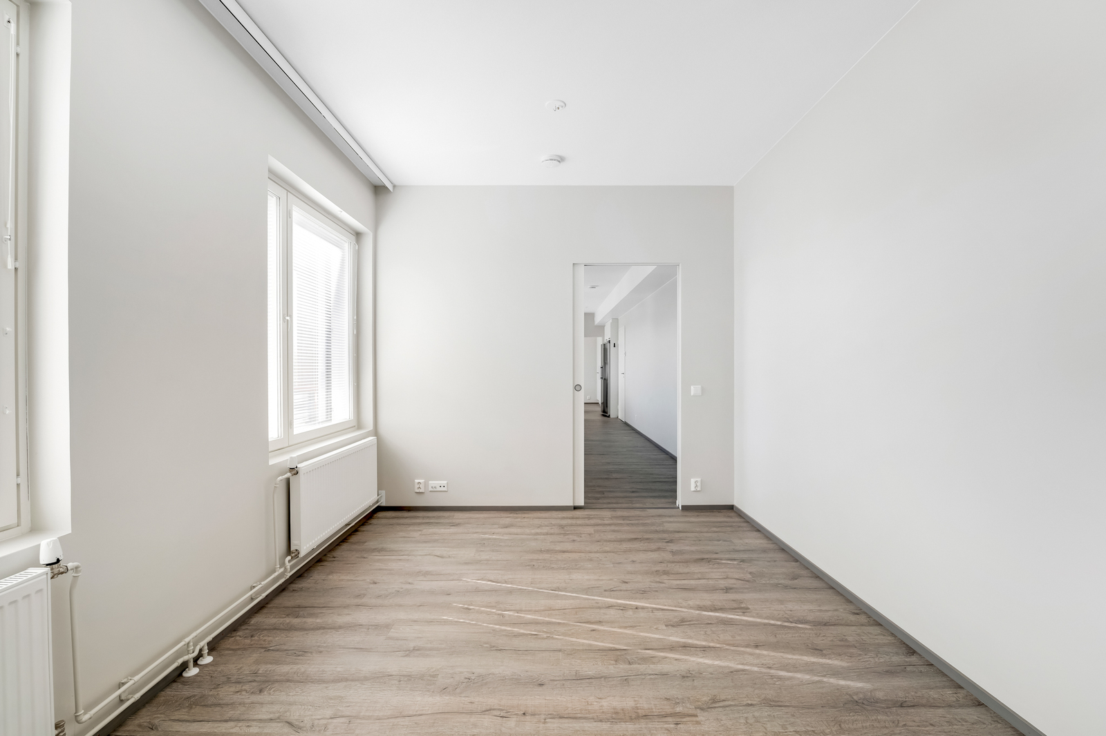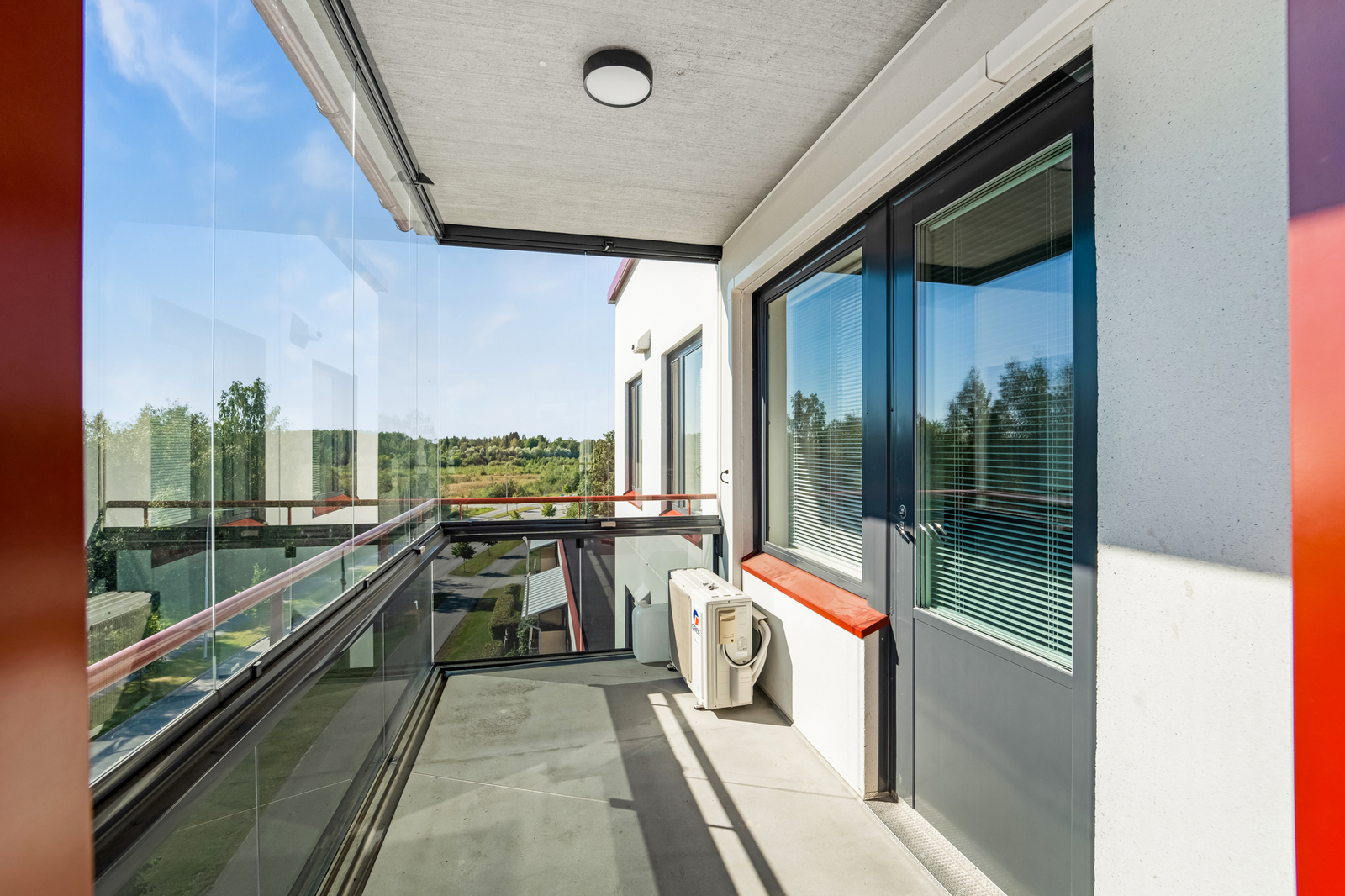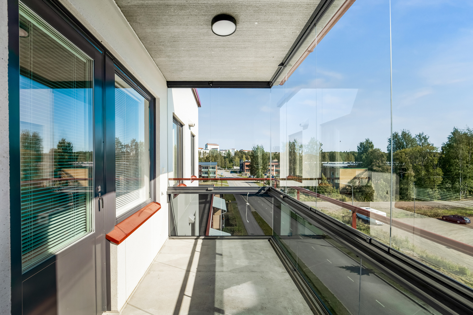 Seinät (maali), lattiat (vinyyli), Olohuoneesta käynti lasitetulle parvekkeelle. |