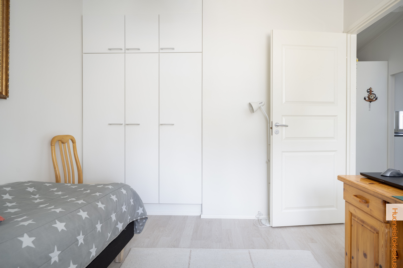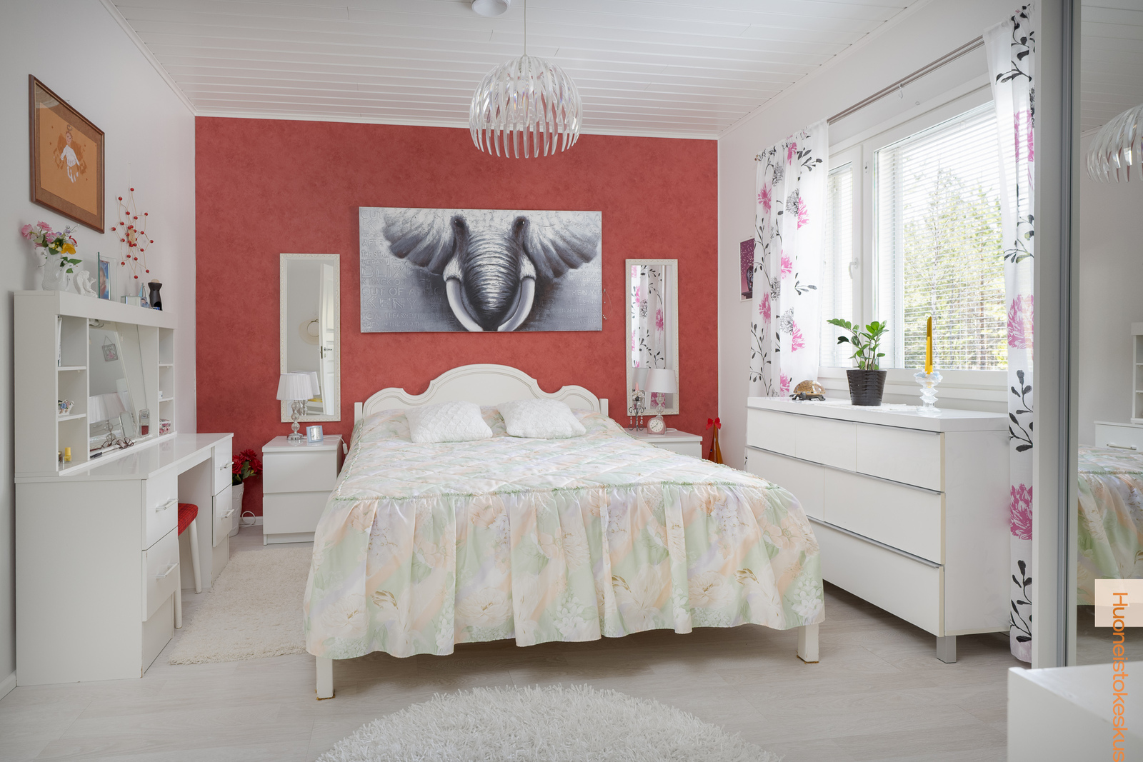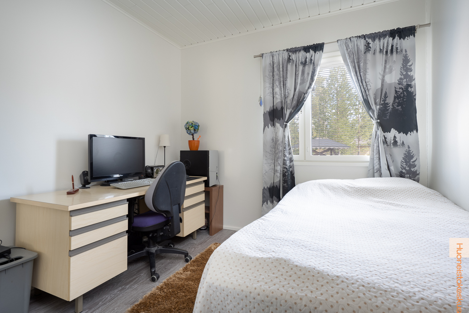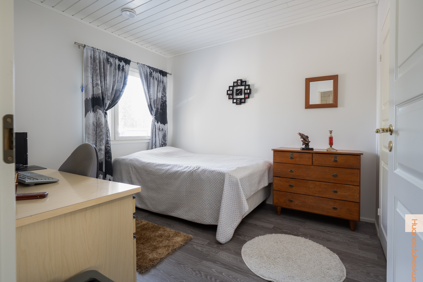 | Makuuhuoneen kuvaus | Lukumäärä: 4, seinät (maali ja tapetti), lattiat (laminaatti) |