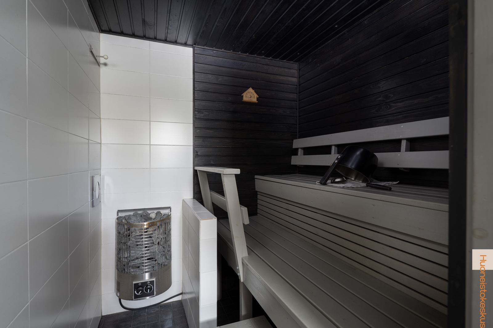 | Saunan kuvaus | Seinät (puu), lattiat (laatta), Sähkökiuas, Valmius myös puukiukaalle. |