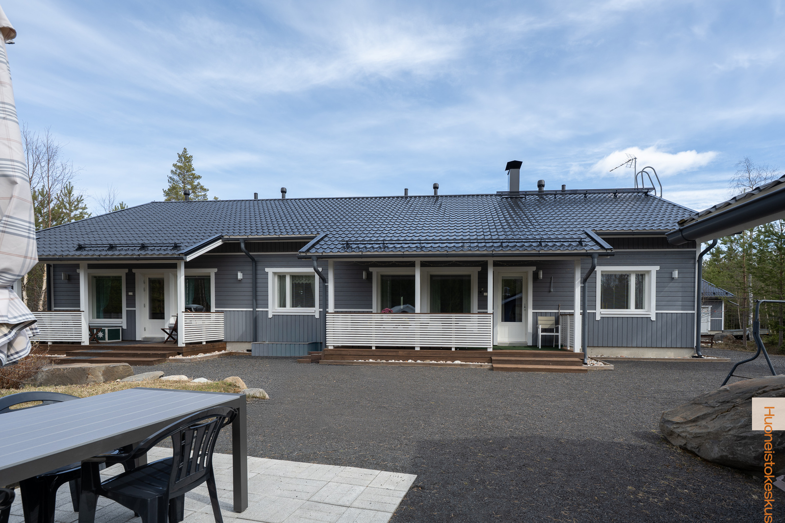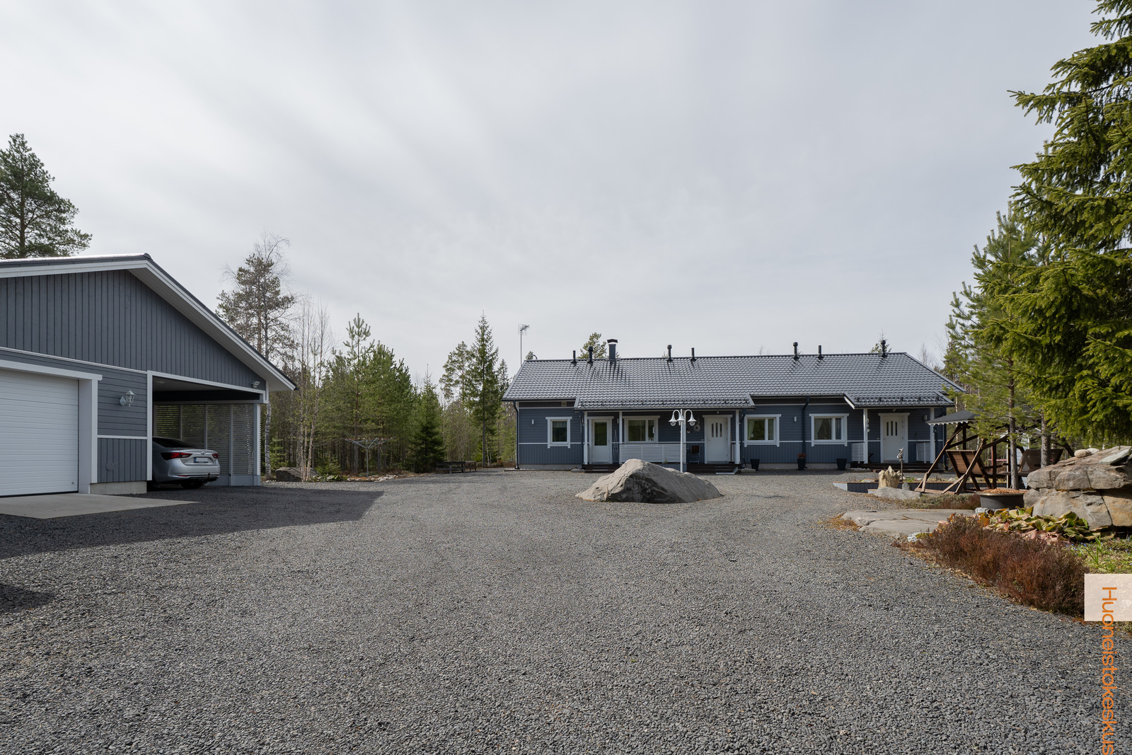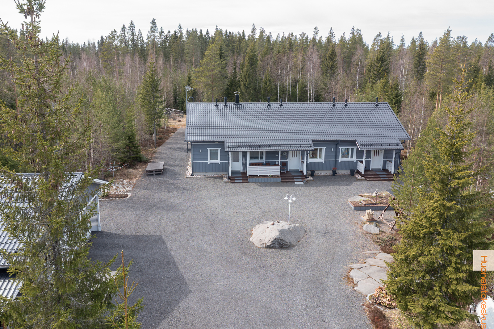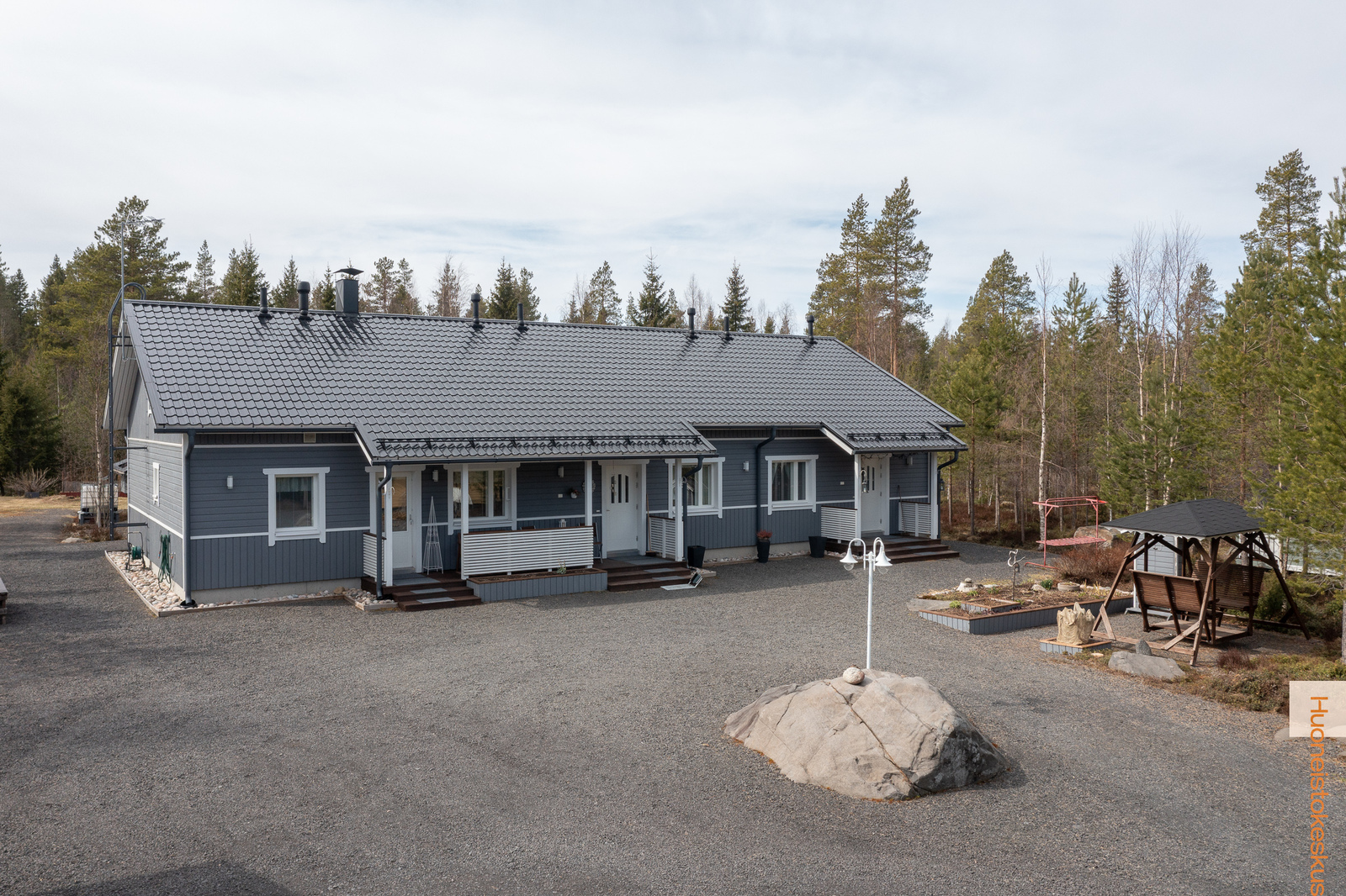 Kohde myydään kokonaisena kiinteistönä, mutta talo koostuu kahdesta asunnosta. Isolla puolella 120,6m² jossa kolme makuuhuonetta, olohuone, keittiö, wc, kodinhoitohuone, pesuhuone ja sauna. Päädyssä 51m² kaksio omalla sisäänkäynnillä, jossa olohuone, keittiö, makuuhuone, wc sekä oma kylpyhuone. Halutessaan kaksion keittiöstä voi tehdä sisäoven asuntojen välille.