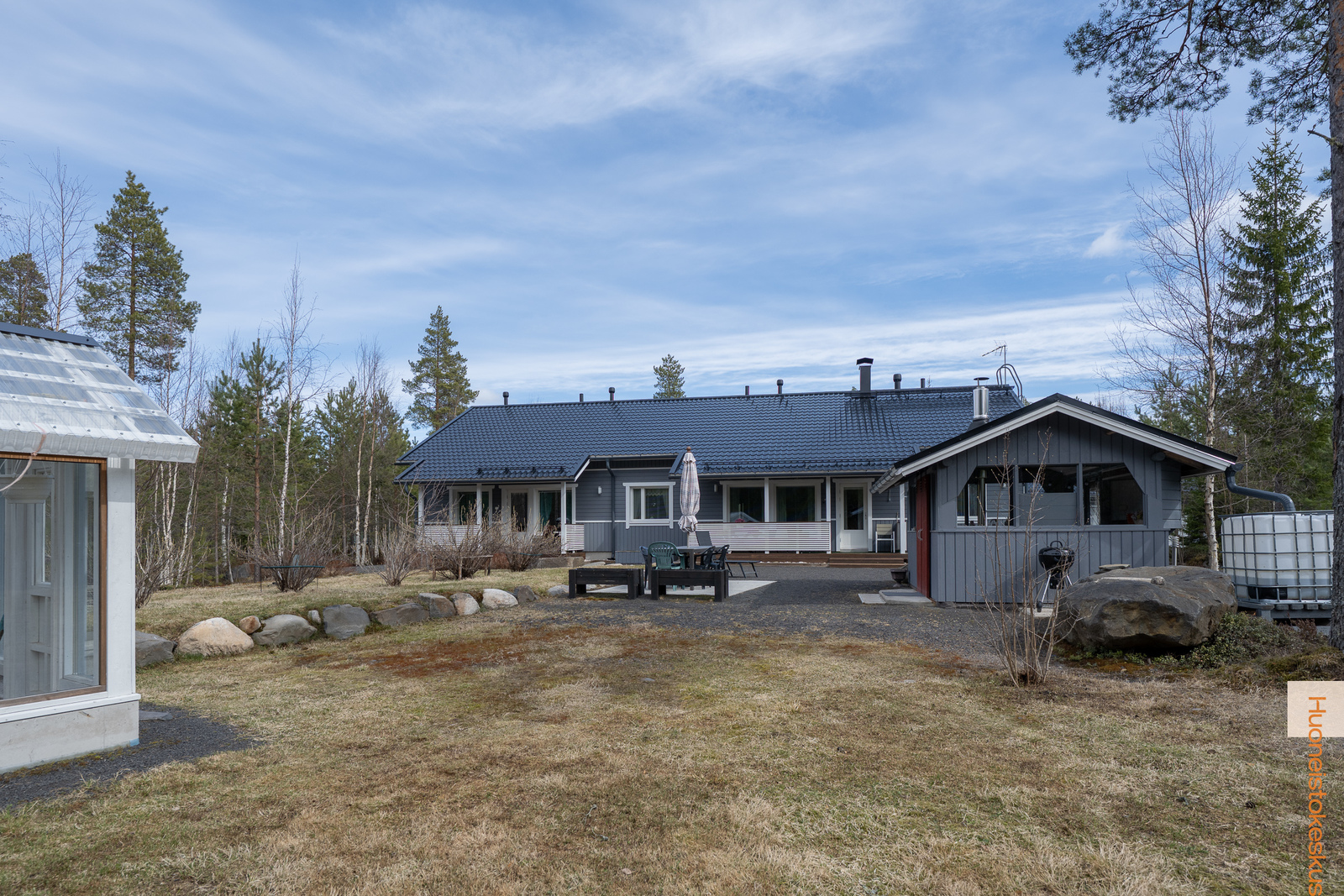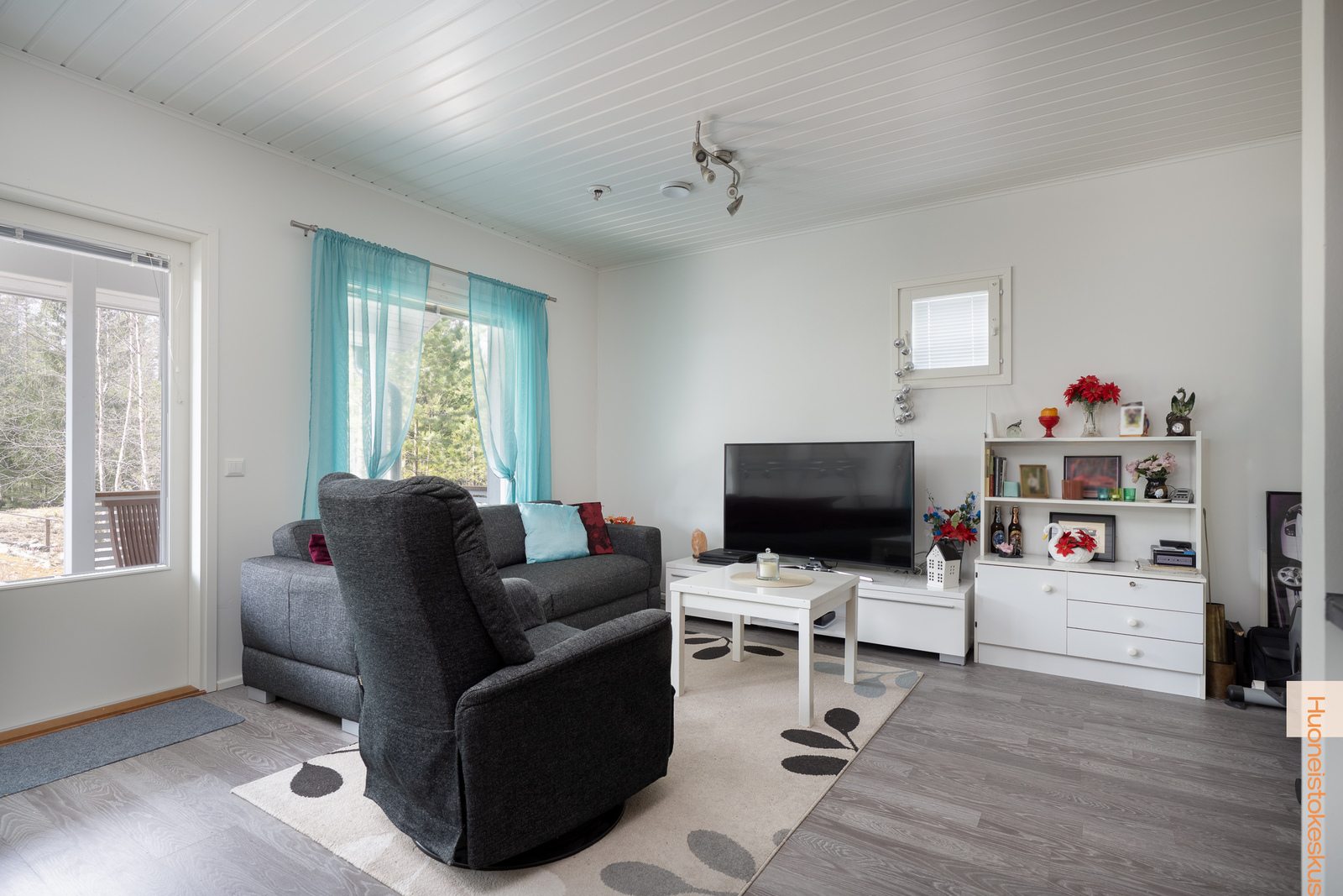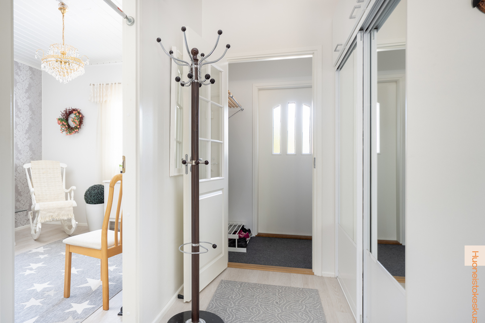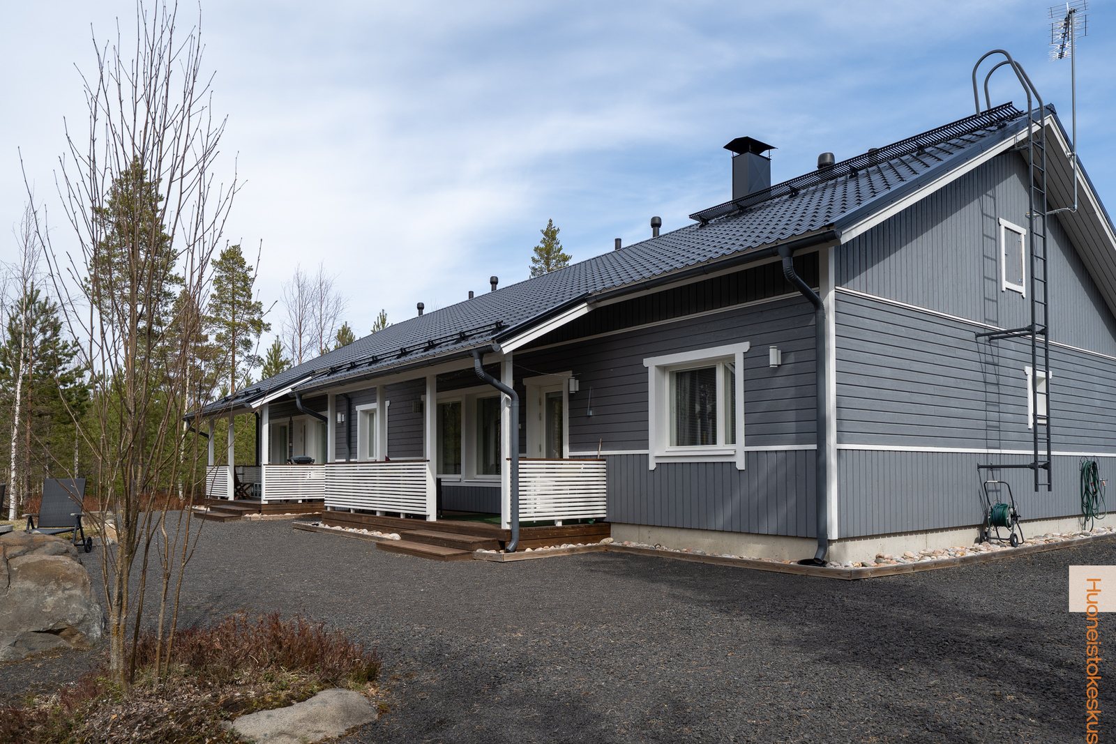 Kohde myydään kokonaisena kiinteistönä, mutta talo koostuu kahdesta asunnosta. Isolla puolella 120,6m² jossa kolme makuuhuonetta, olohuone, keittiö, wc, kodinhoitohuone, pesuhuone ja sauna. Päädyssä 51m² kaksio omalla sisäänkäynnillä, jossa olohuone, keittiö, makuuhuone, wc sekä oma kylpyhuone. Halutessaan kaksion keittiöstä voi tehdä sisäoven asuntojen välille.