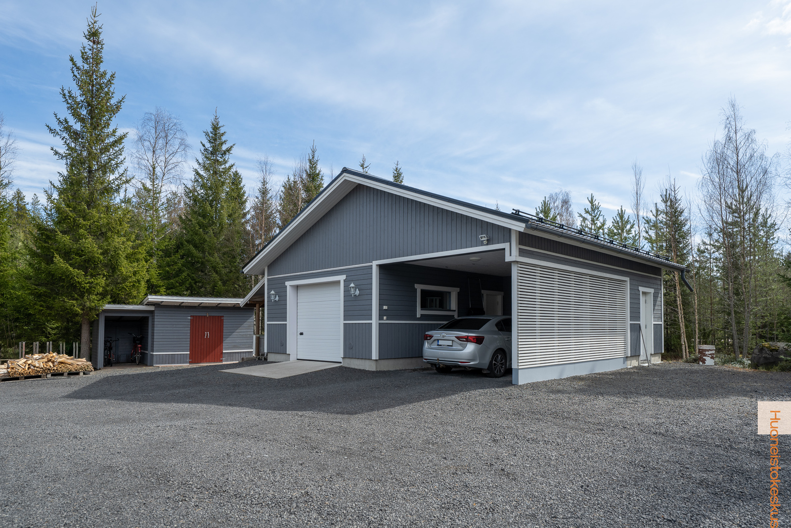 | Muut rakennukset | Autotallirakennuksessa tallitila, varasto ja autokatos. Pyöräkatos/puuliiteri, konttivarasto, leikkimökki, kesäkeittiö, kasvihuone, laavu. |