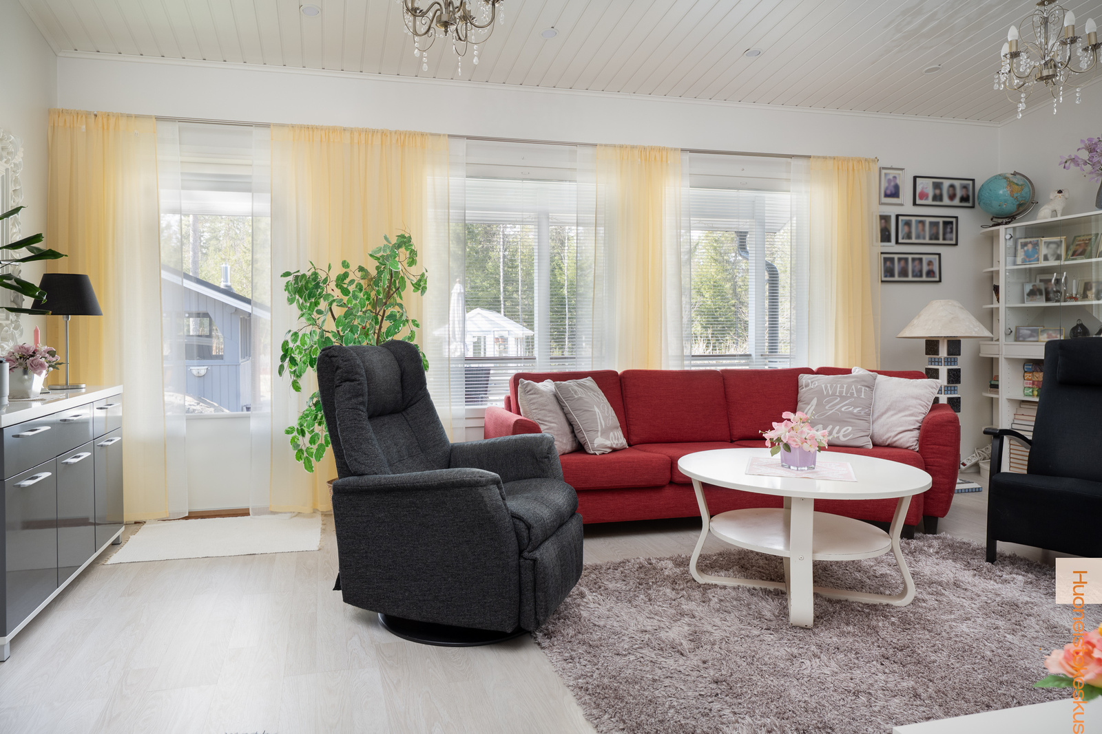 | Olohuoneen kuvaus | Seinät (maali), lattiat (laminaatti) |