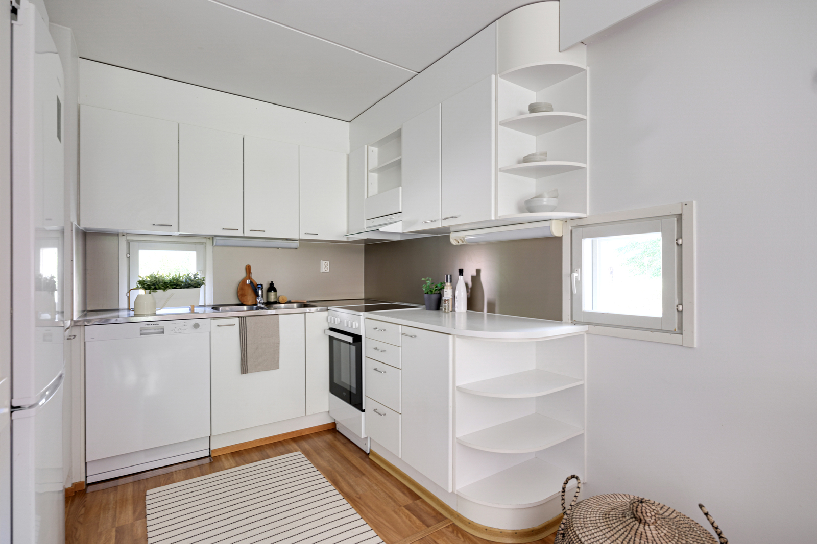 | Keittiön kuvaus | Liesi (sähköliesi), työtasot (laminaatti), lattiat (laminaatti), liesi, liesituuletin, jääkaappipakastin ja astianpesukone |