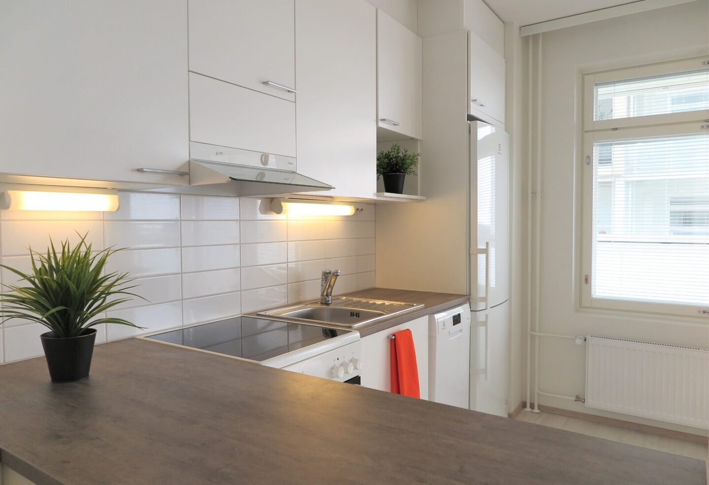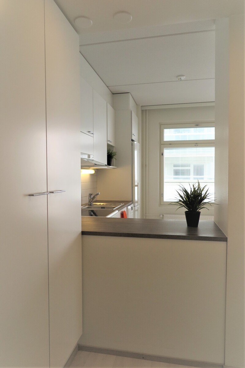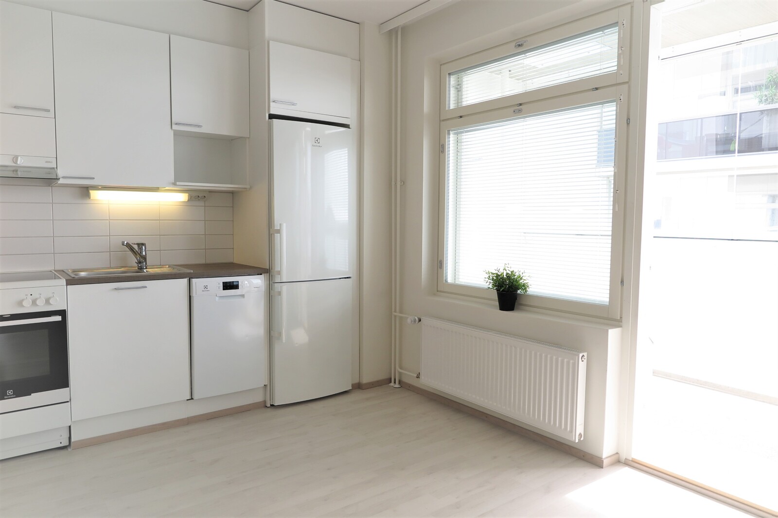 Kätevän kokoinen kaunis vaalea koti. Erittäin toimivan pohjan ansiosta neliöltään suuremman oloinen kolmannen kerroksen koti. Olohuoneen yhteydessä avoin keittiötila ja iso lasitettu parveke. Avara ja tilava koti, jossa mukavan kokoinen makuuhuone sekä vaatehuone. Soveltuu myös liikuntarajoitteiselle. Hyvin hoidettu taloyhtiö v. 2016. Oma tontti. Huoletonta asumista vailla suuria remontti- tai pihatyöhuolia. Kauppa lähellä, rautatieasema lähellä, luonto lähellä. Myydään vuokrattuna, vuokralainen valmiina.