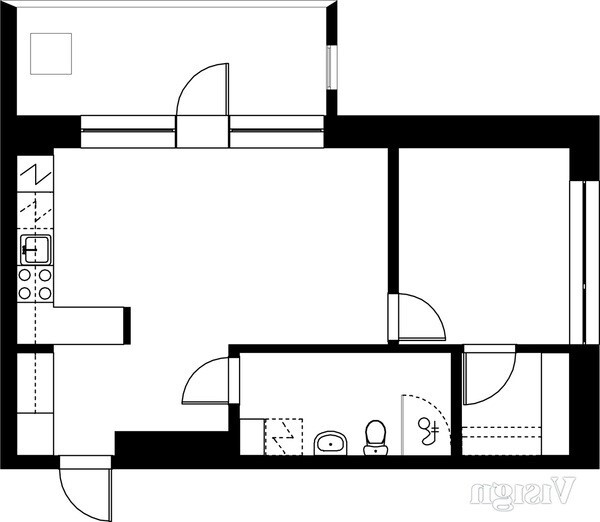 Seinät (maali), lattiat (laminaatti), Reilun kokoinen olohuone, jonka yhteydessä avokeittiö ja viihtyisä lasitettu parveke. |
