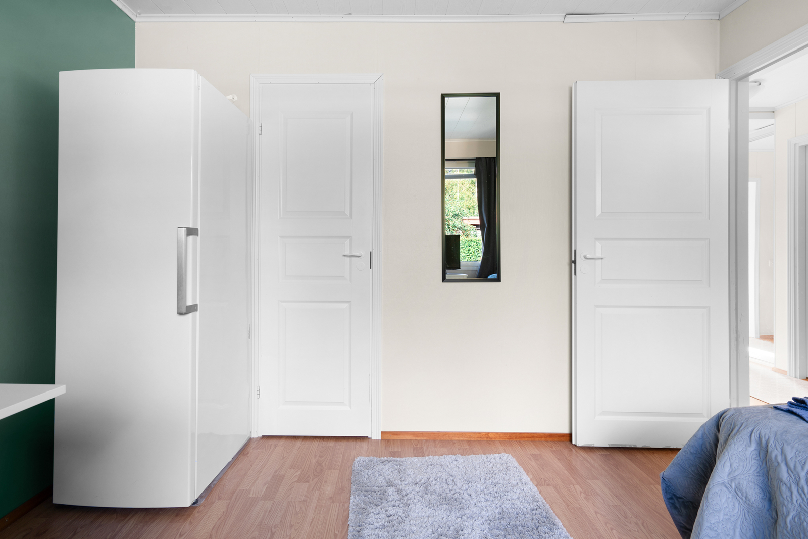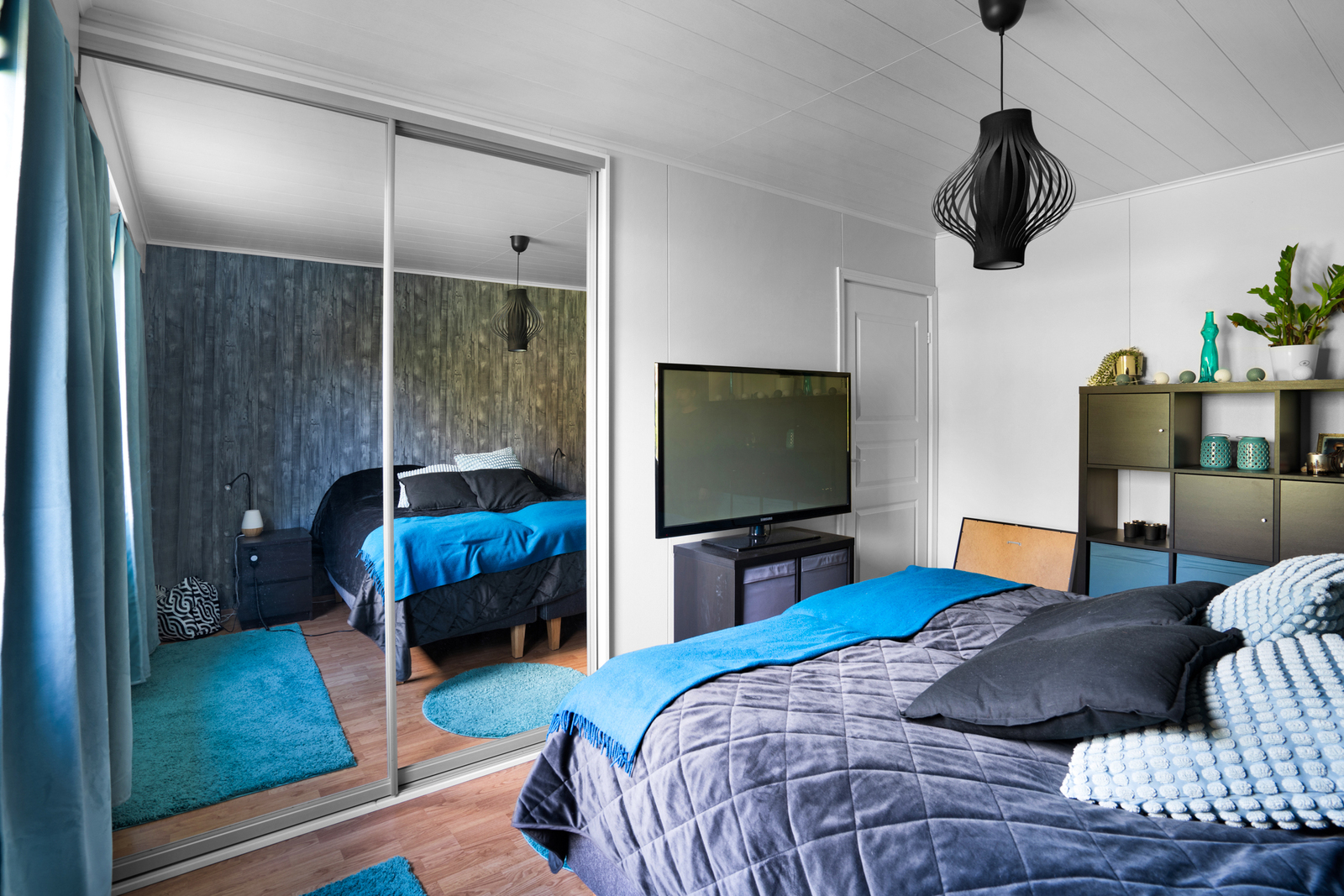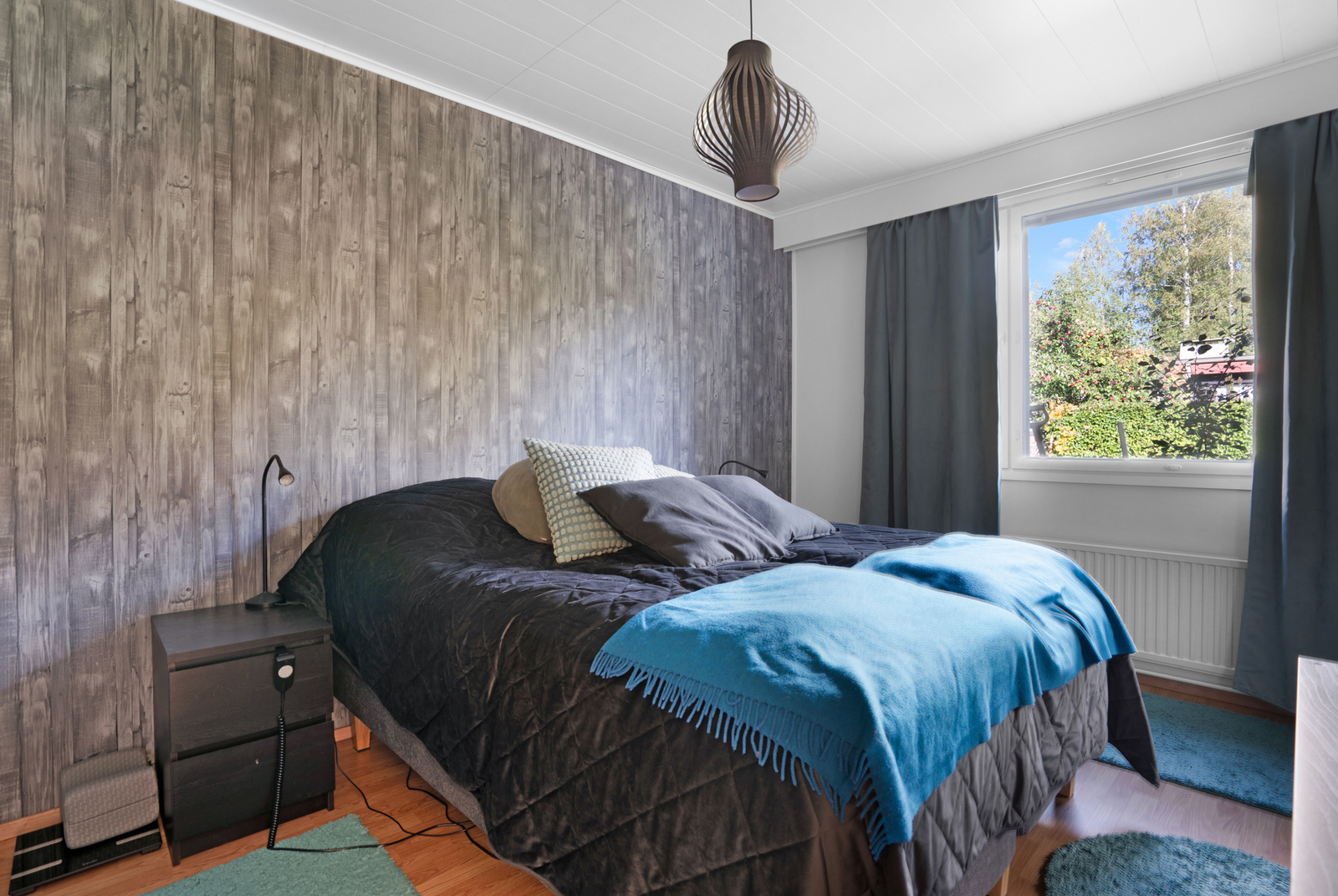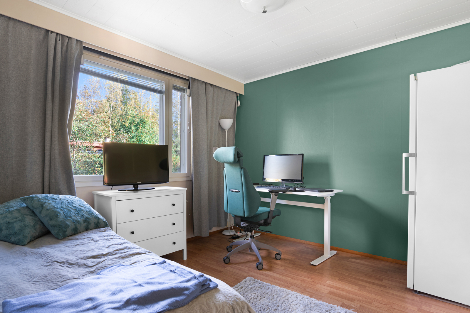 | Makuuhuoneen kuvaus | Lukumäärä: 2, seinät (tapetti ja maali), lattiat (laminaatti) |