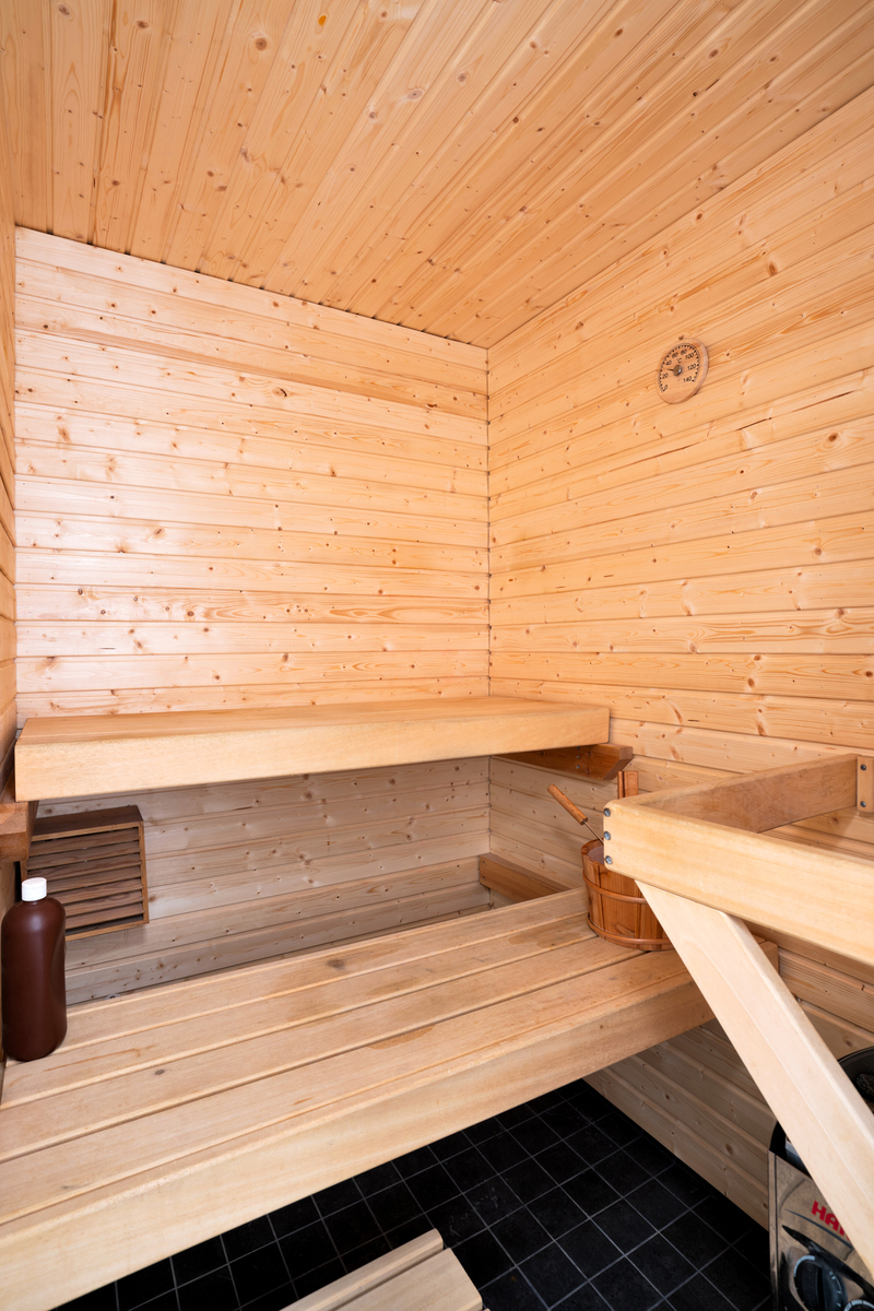 | Saunan kuvaus | Seinät (puu), lattiat (laatta), Sähkökiuas |