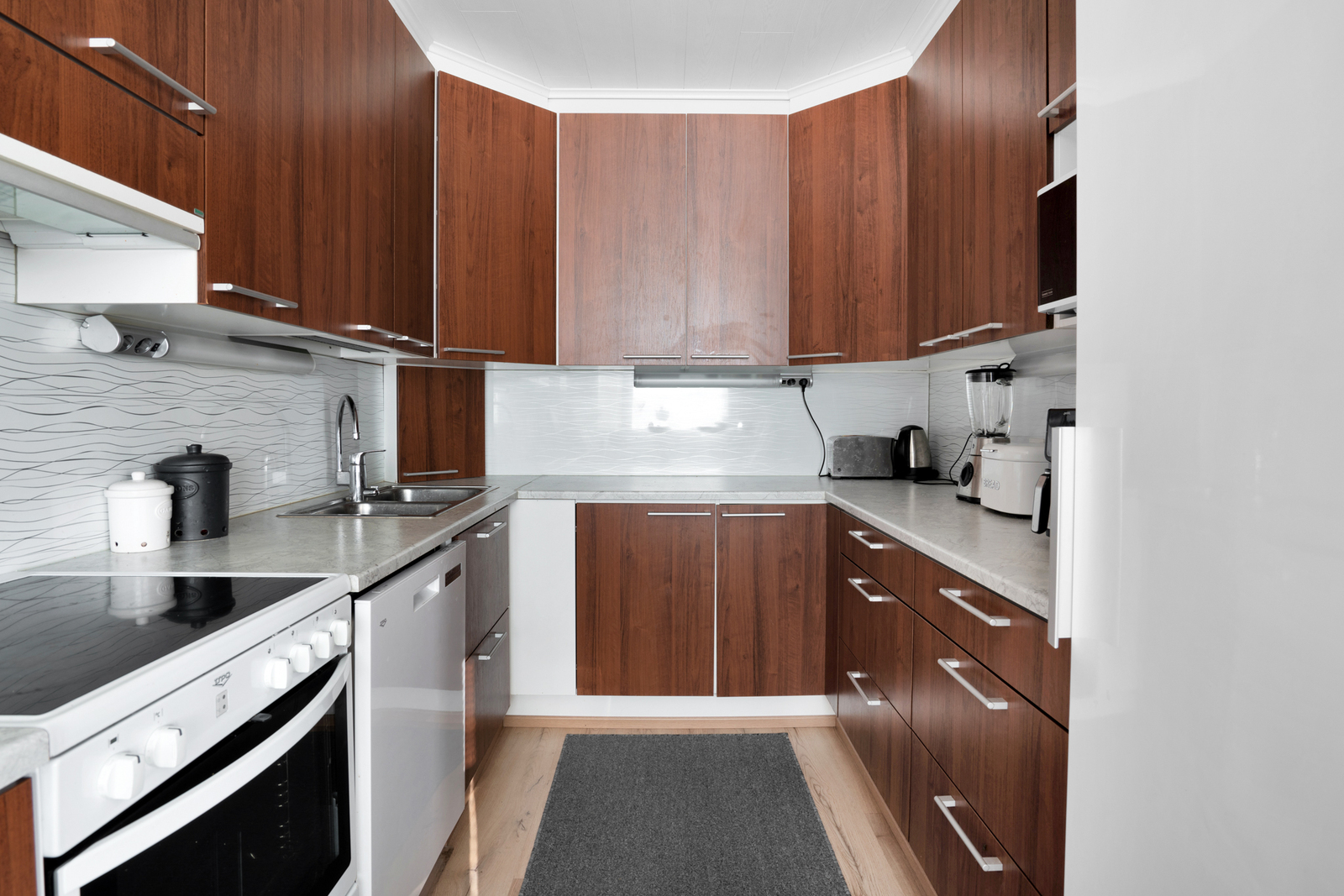 | Keittiön kuvaus | Liesi (Keraaminen liesi), työtasot (laminaatti), lattiat (laminaatti), jääkaappi, erillinen pakastin, astianpesukone, liesituuletin ja kiinteät valaisimet |