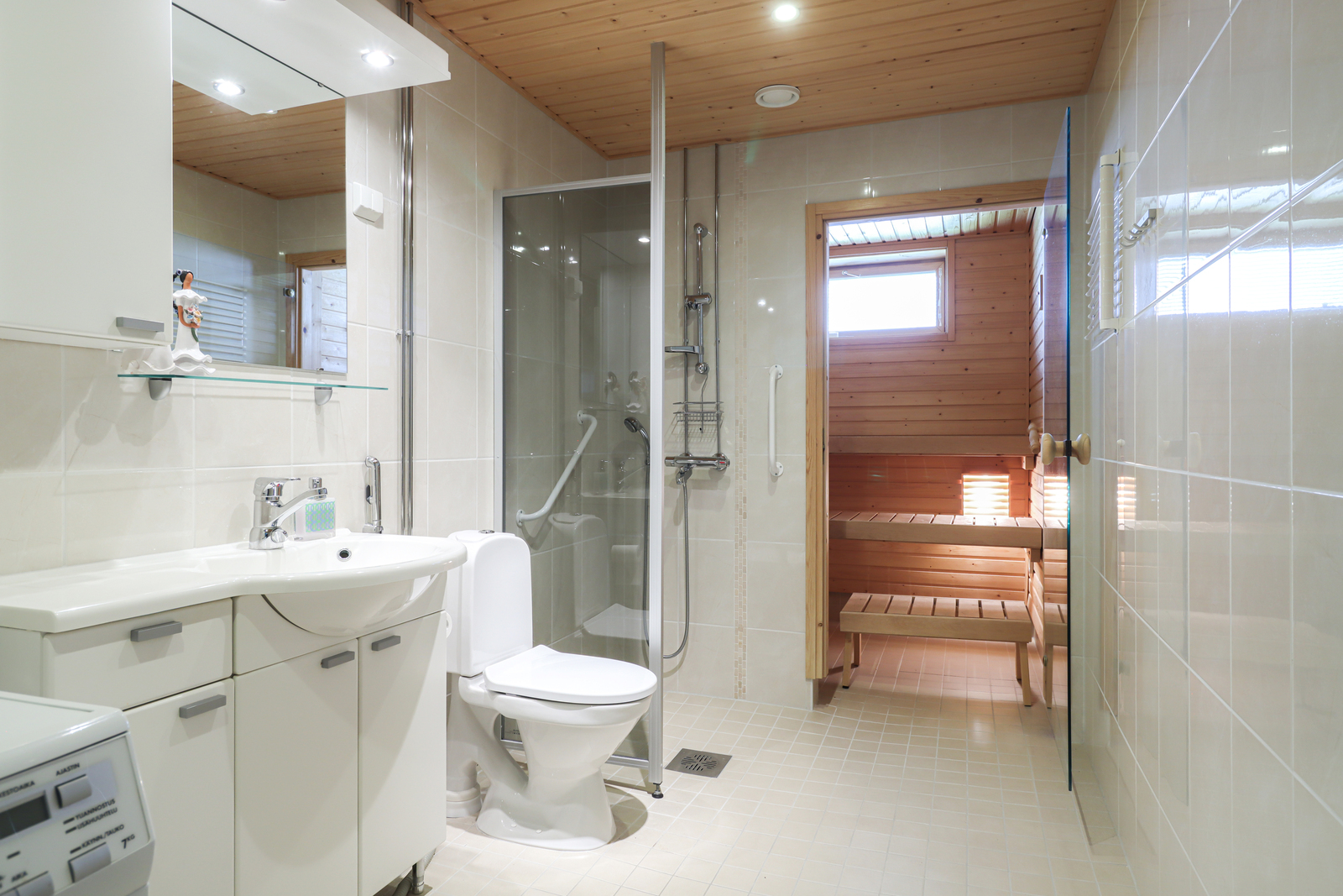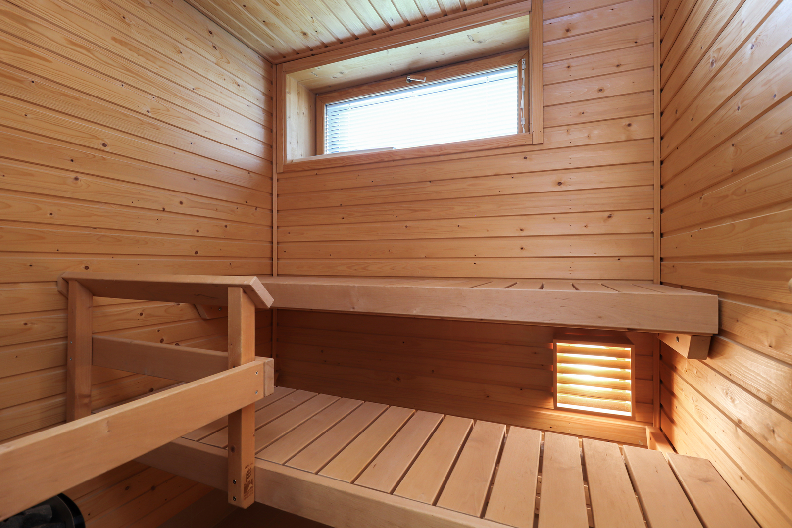Seinät (puu), lattiat (laatta), Sähkökiuas, ikkunallinen |