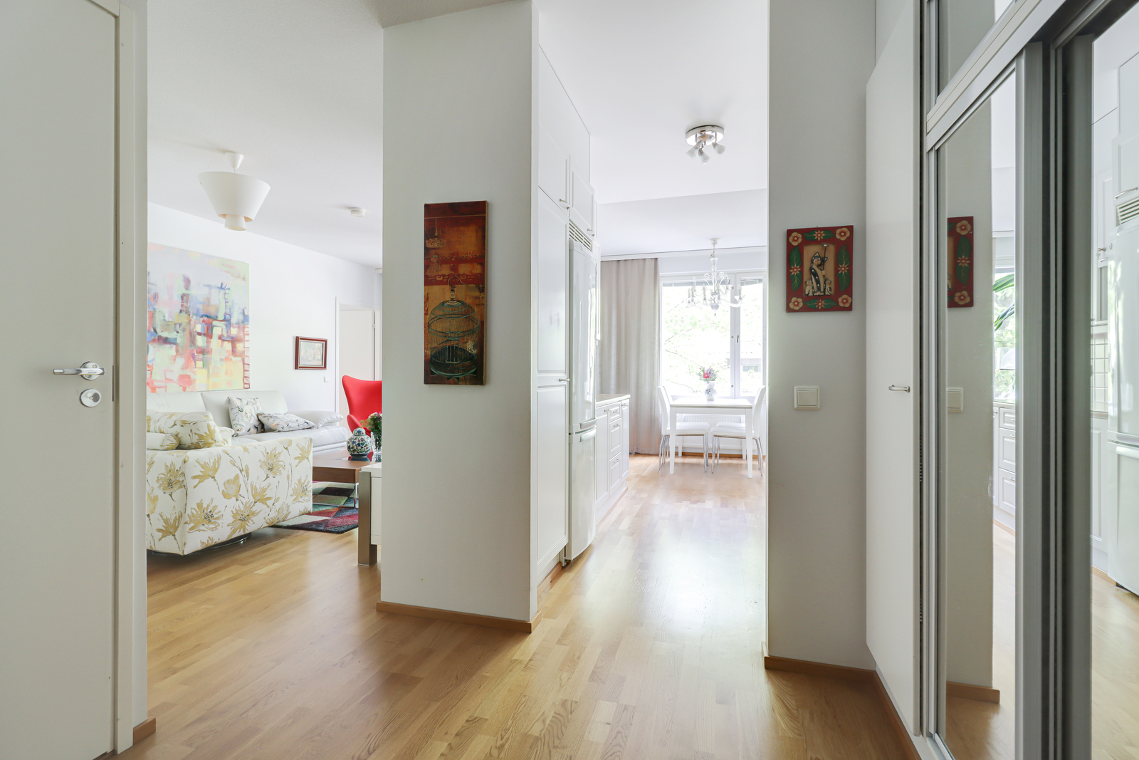 Tämä siististi asuttu kolmio sijaitsee vuonna 2008 valmistuneessa talossa, ja käytännöllisesti katsoen aivan Herttoniemen ytimessä, tarjoaa sinulle modernin ja värimaailmaltaan hillityn pohjan sisustaa siitä mieleisesi. Hyvän kokoisen olohuoneen ja keittiön avoin yhdistelmä jatkuu viihtyisälle, lasitetulle pikku parvekkeelle ja makuuhuoneita on kaksi. Pienemmästä makuuhuoneesta saat lastenhuoneen, vierashuoneen, tai vaikka etätyöhuoneen. Tilava kylpyhuone ja oma sauna tuovat laatua asumiseen. Asunnosta saa vaikutelman, että neliöitä olisi enemmänkin; ison eteisen kaapiston peililiukuovet ja avoin pohjaratkaisu tuovat tilan tuntua, joka jatkuu luontevasti läpi asunnon.