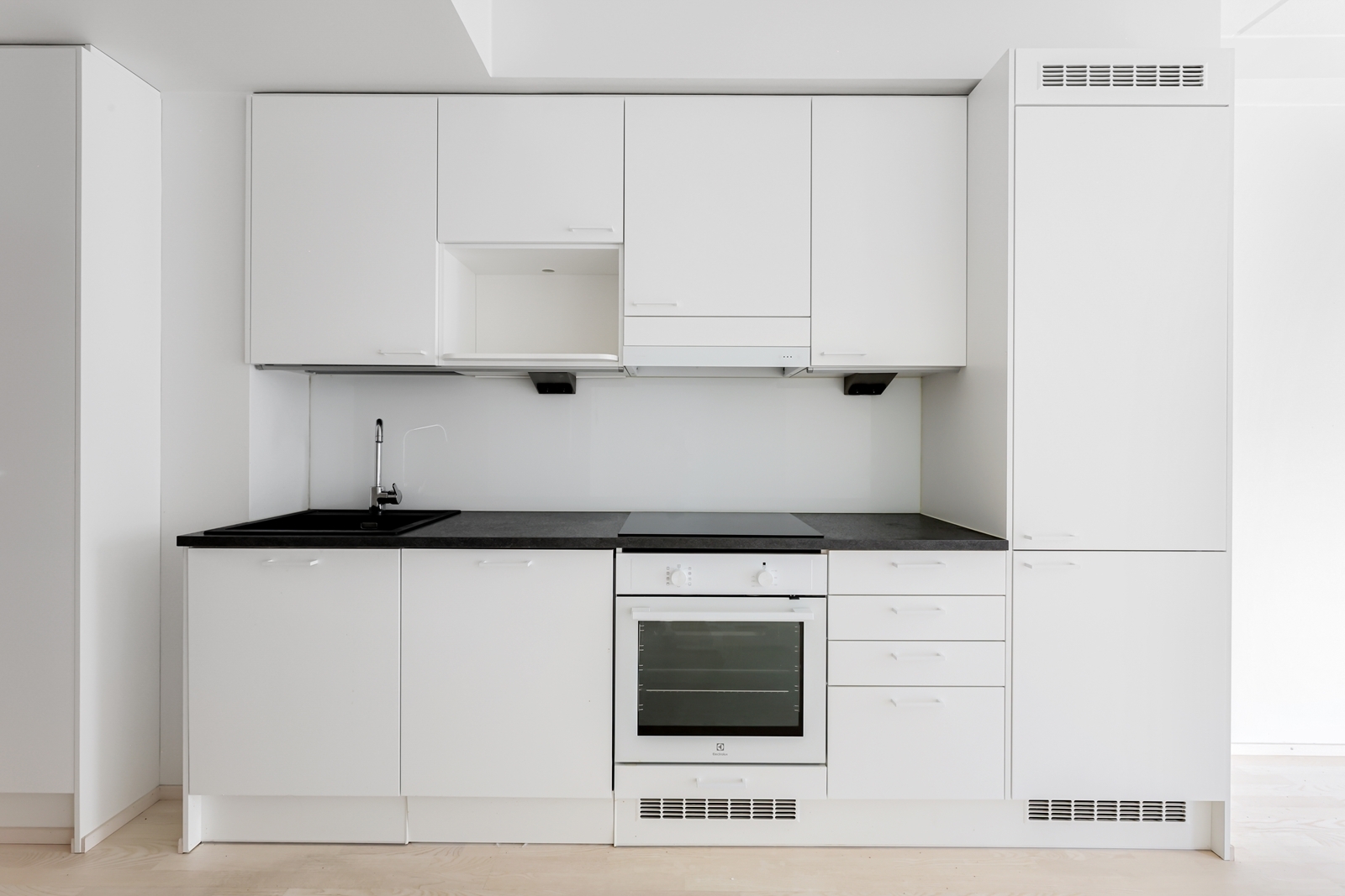 | Keittiön kuvaus | Liesi (erillisuuni, liesitaso), työtasot (laminaatti), seinät (maali), lattiat (laatta), jääkaappipakastin, liesituuletin, astianpesukone, erillisuuni ja liesitaso, kiinteät valaisimet |