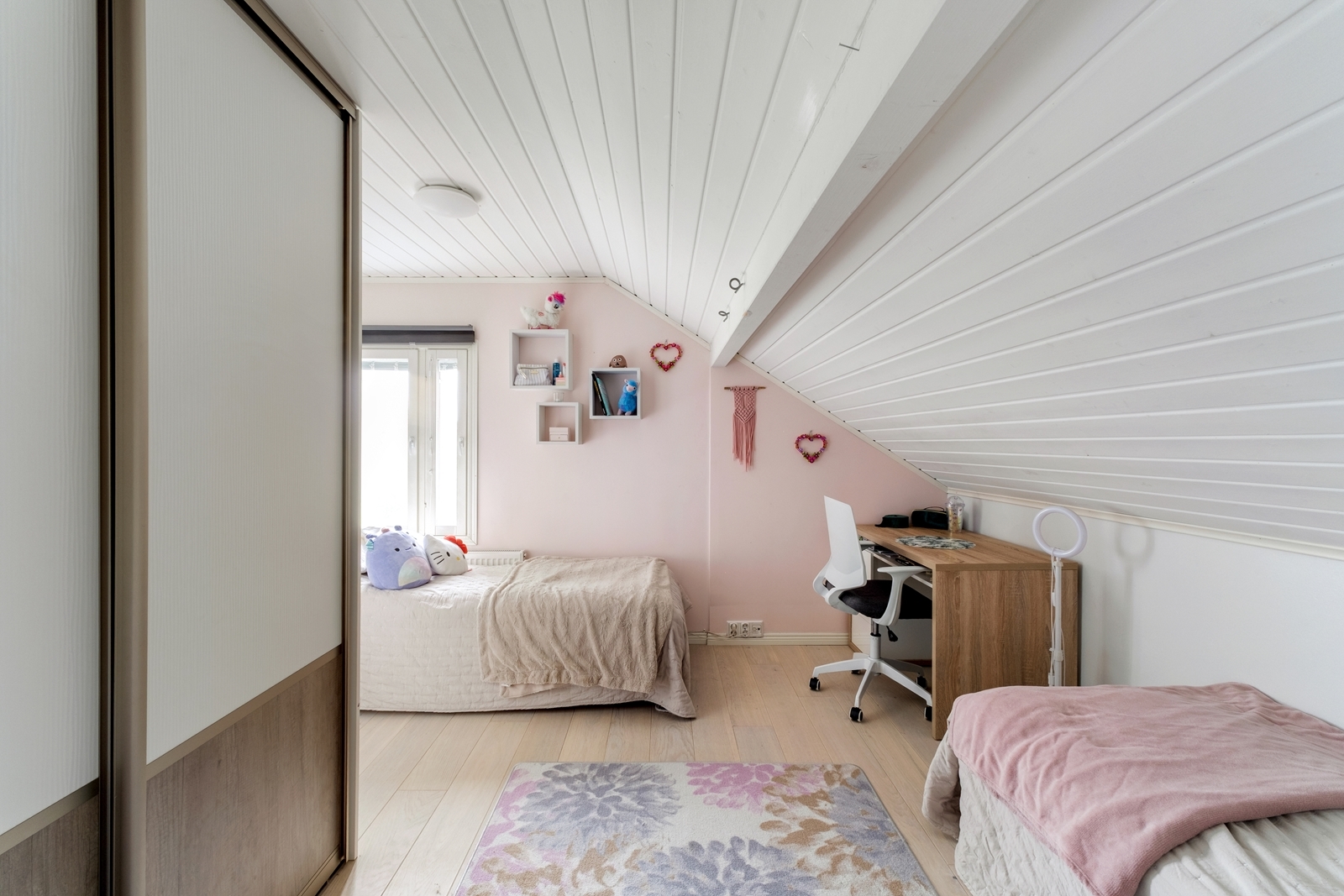Tämä koti on suunniteltu mukavaan arkeen ja muuntautuviin tarpeisiin. Kolmeen kerrokseen sijoittuvat asuintilat antavat mahdollisuuksia niin isommalle perheelle, etätyöhön, harrastuksiin kuin vierashuoneisiin. Jokainen kerros palvelee omalla tavallaan ja kokonaisuus toimii arjessa erinomaisesti.