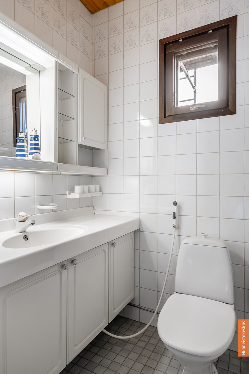 | WC-tilojen kuvaus | Lukumäärä: 1, Peilikaappi ja bidee-suihku, seinät (Kaakeli), lattiat (Laatta) |