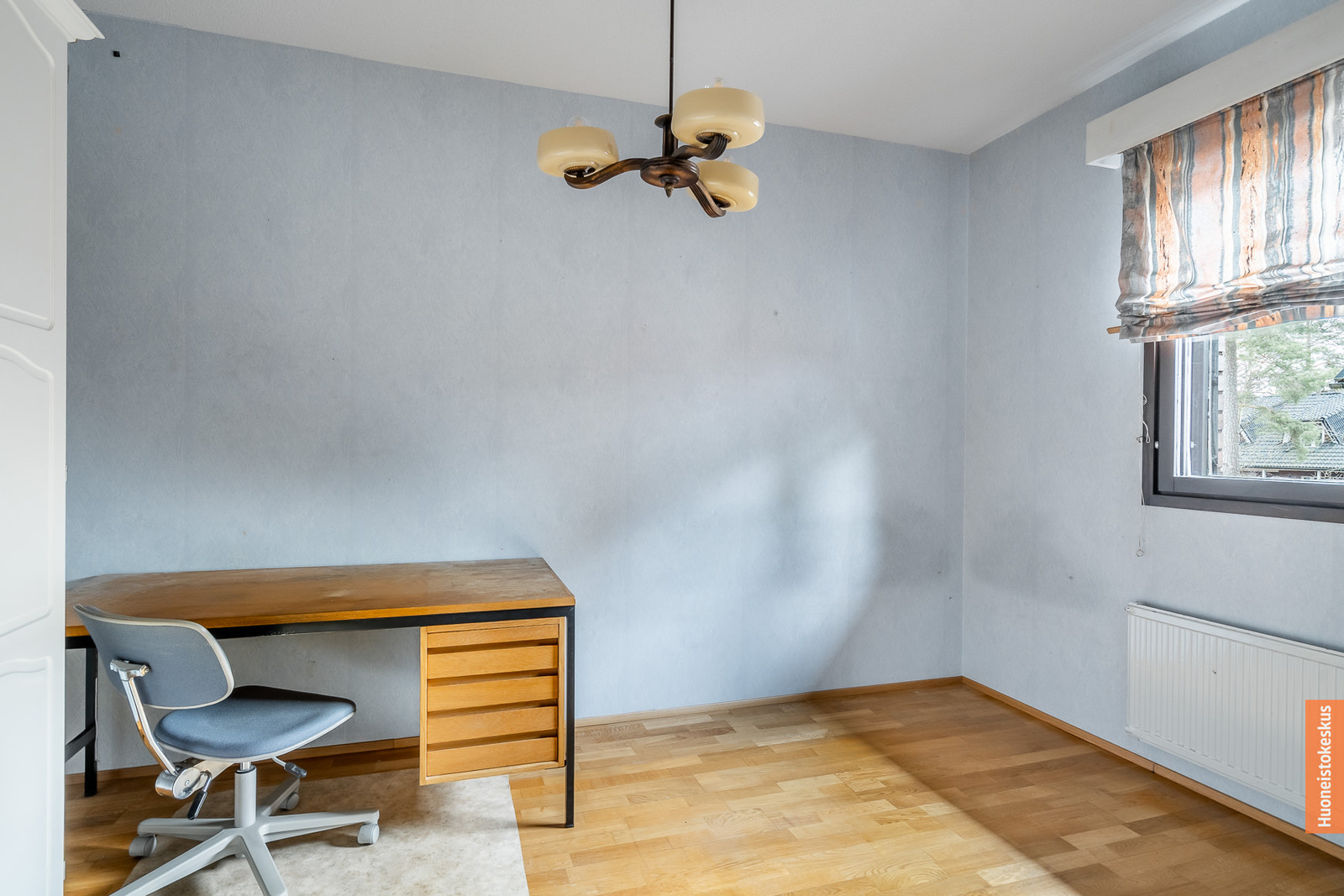 | Makuuhuoneen kuvaus | Lukumäärä: 4, seinät (tapetti ja maali), lattiat (parketti ja muovimatto) |