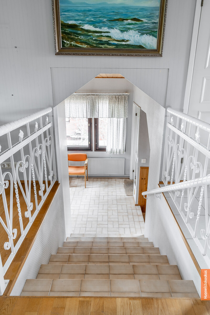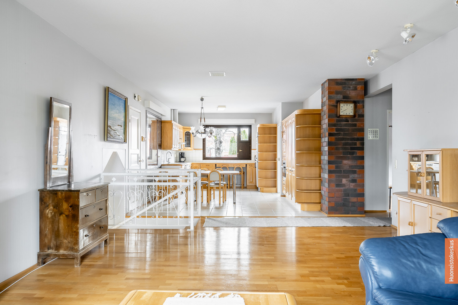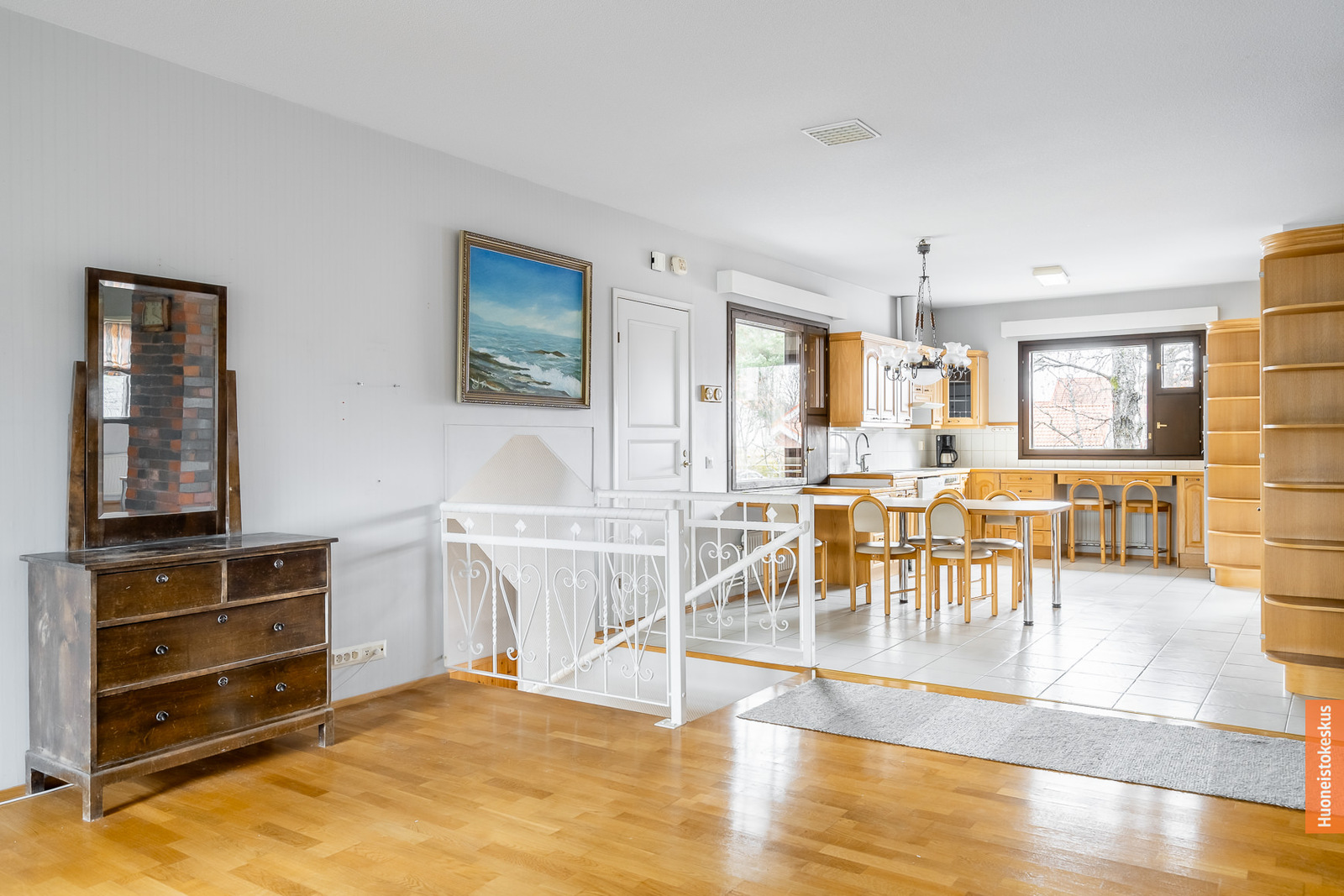 | Olohuoneen kuvaus | Seinät (tapetti ja maali), lattiat (parketti ja korkki), Alakerran makuhuoneen lattiamateriaali on korkki ja keskikerroksen makuuhuoneiden lattiamateriaali on parketti. |