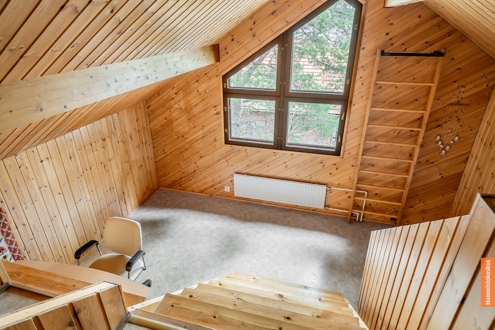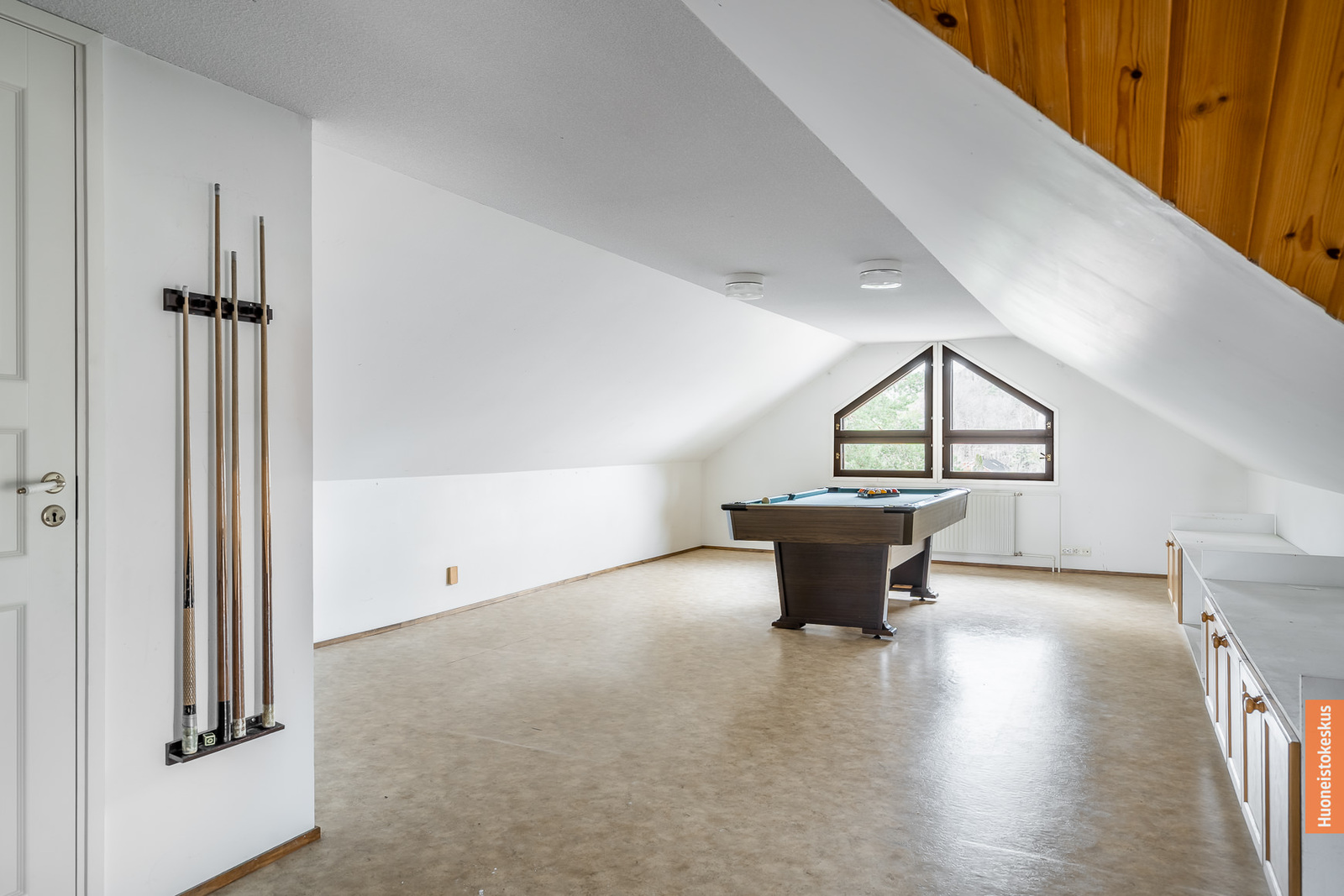 – Tilava aula ullakkokerroksessa, joka toimii vaikka pelihuoneena.