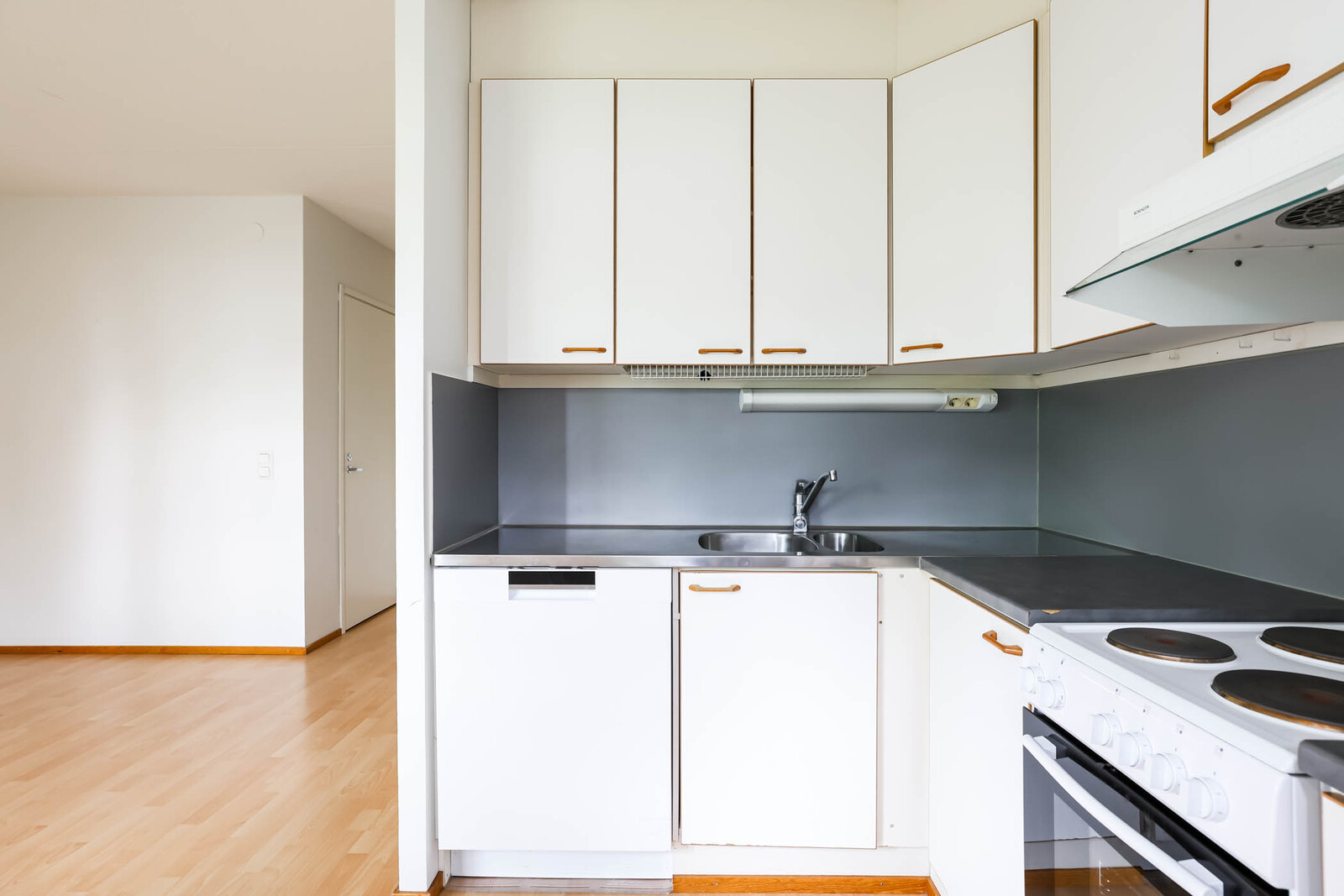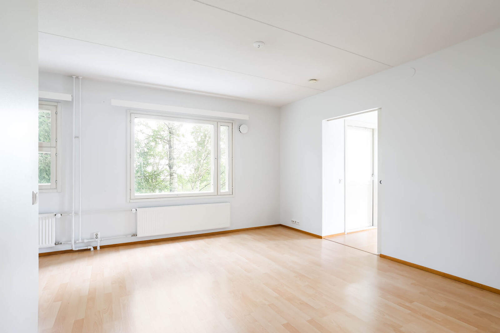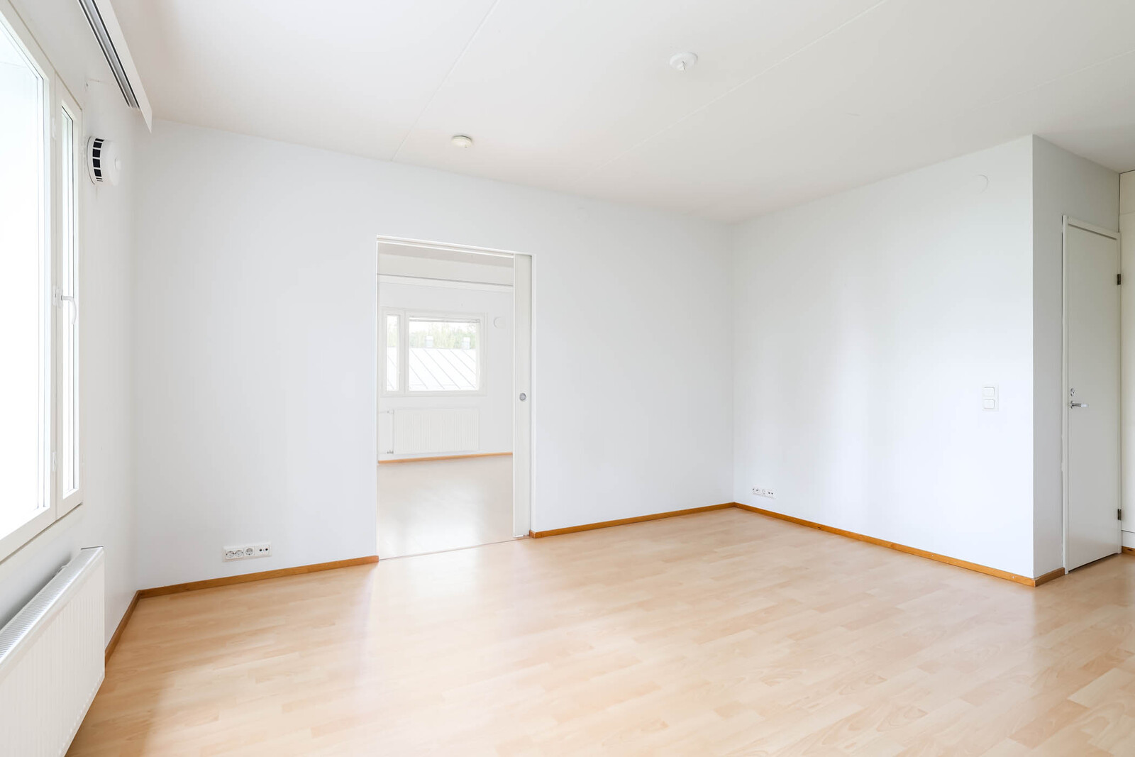 Tässä kodissa on toimiva pohjaratkaisu ja avarat tilat. Avokeittiö yhdistyy saumattomasti olohuoneeseen, mikä luo tilaan avaruutta ja mahdollistaa sujuvan yhdessäolon. Olohuoneesta on käynti tilavalle lasitetulle parvekkeelle, jossa voit nauttia aamukahvit tai illan rauhasta pitkälle syksyyn.