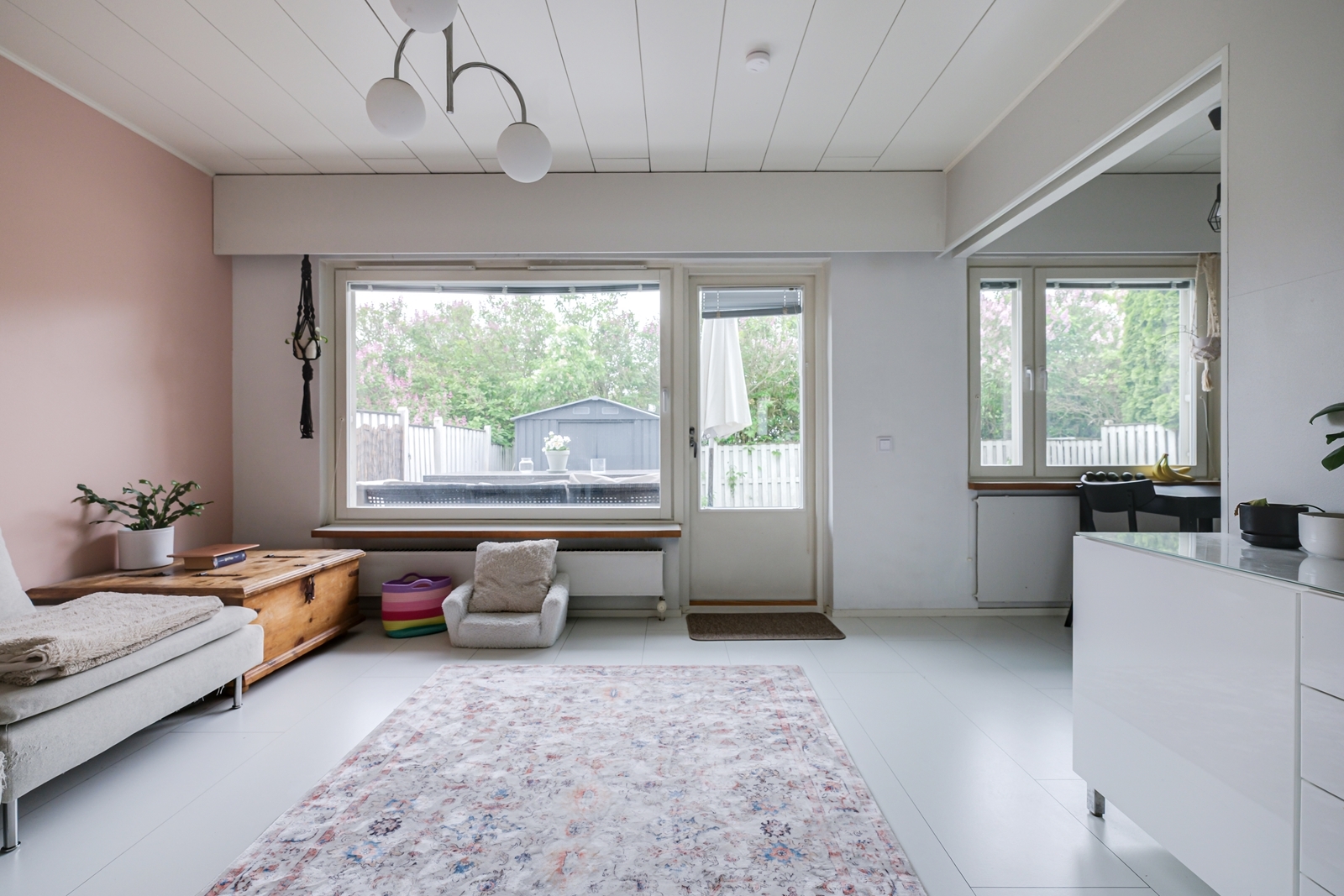 | Olohuoneen kuvaus | Seinät (maali), lattiat (laminaatti) |