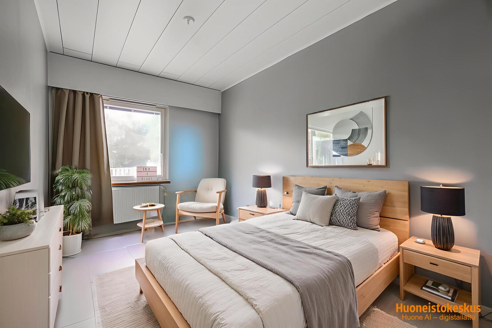 | Makuuhuoneen kuvaus | Lukumäärä: 2, seinät (tapetti ja maali), lattiat (laminaatti) |