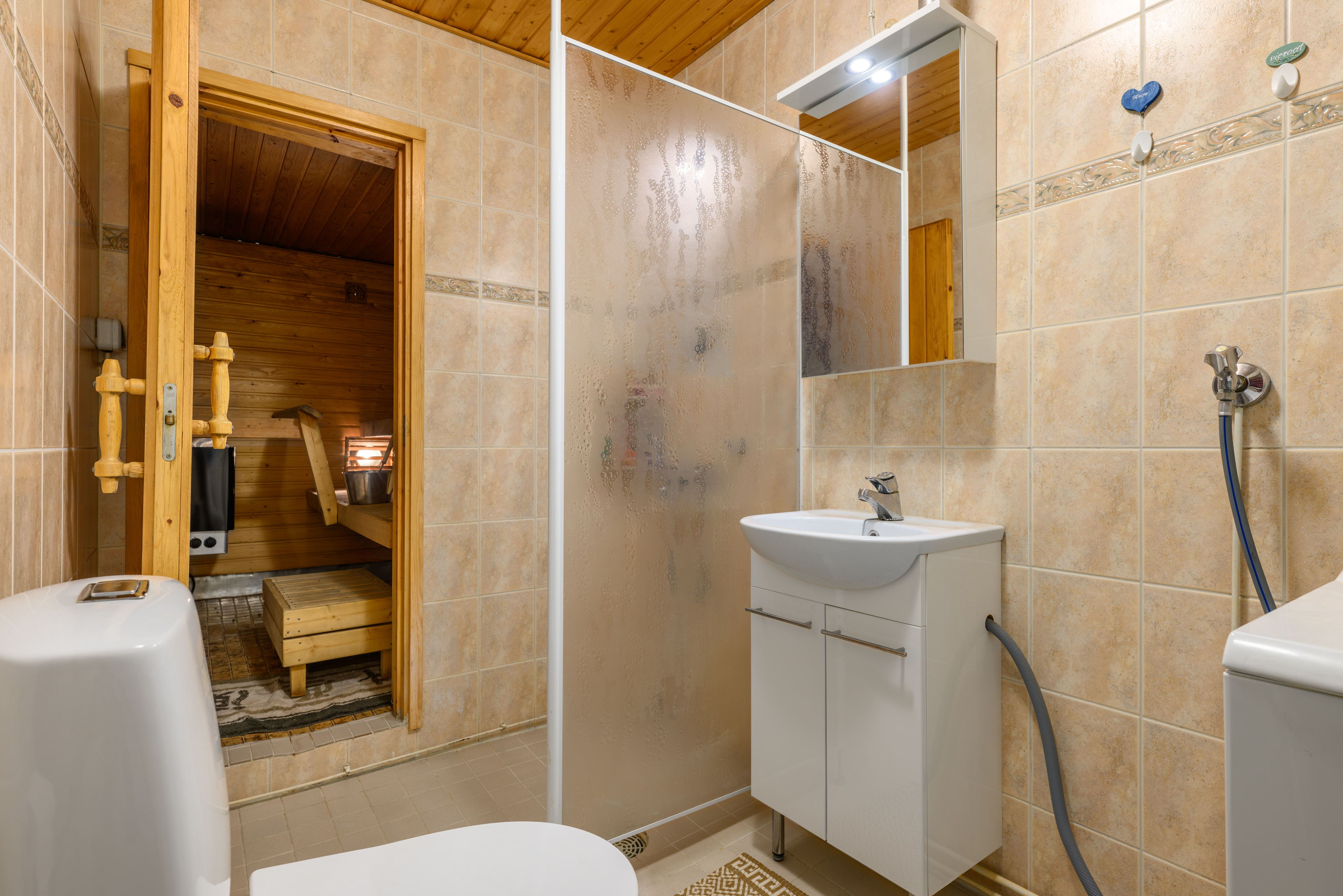 | Saunan kuvaus | Seinät (puu), lattiat (laatta), Sähkökiuas |