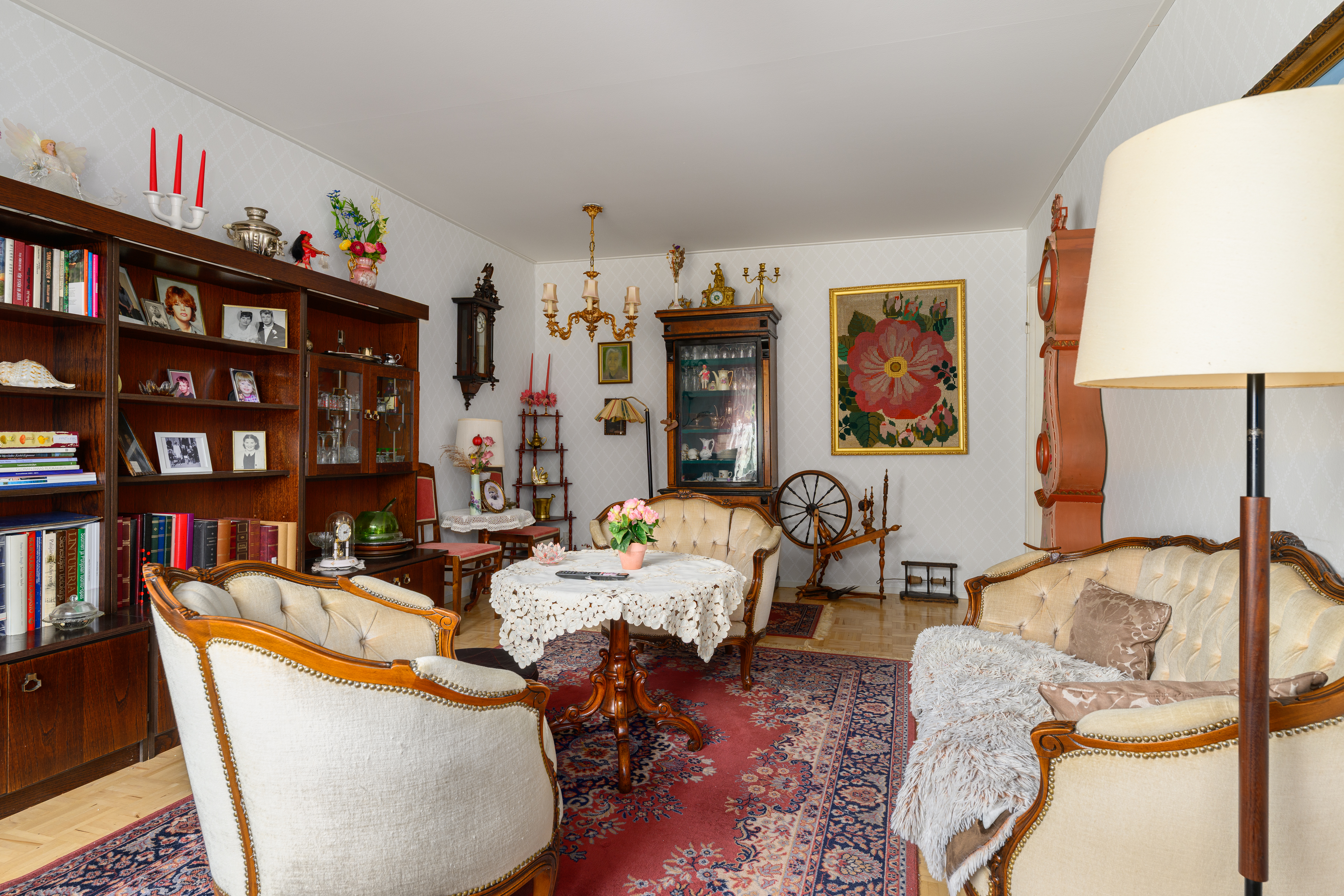 | Olohuoneen kuvaus | Seinät (tapetti), lattiat (parketti) |