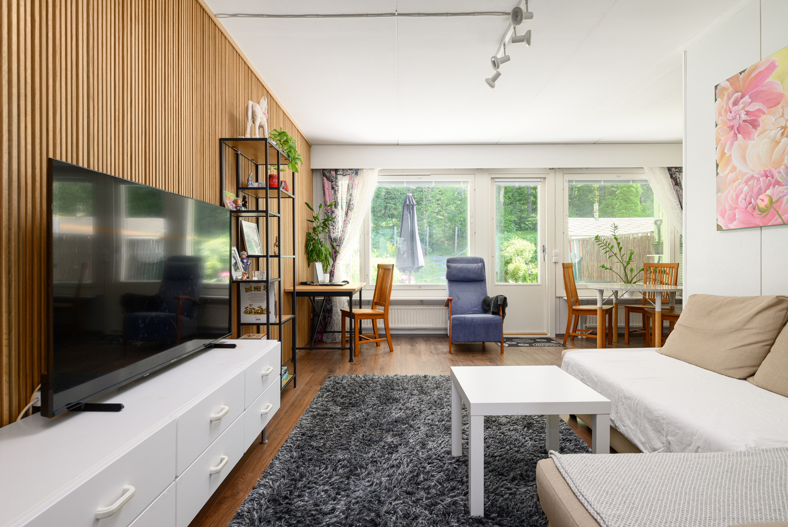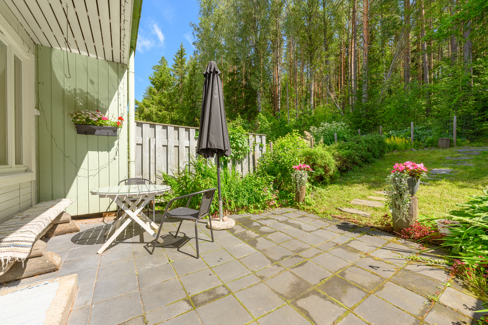 Yksitasoinen, hyväkuntoinen ja super paljon säilytystilaa asunnon kokoon nähden omaava rivitaloasunto odottaa seuraavaa takapihasta nauttijaa. Tämä on niitä harvinaisia yhtiöitä, joissa on upea näkymä metsään ja voipi saada vaikka peuran ihmettelykaverikseen kun hiljentyy ikkunan ääreen, piha on siis ihana.