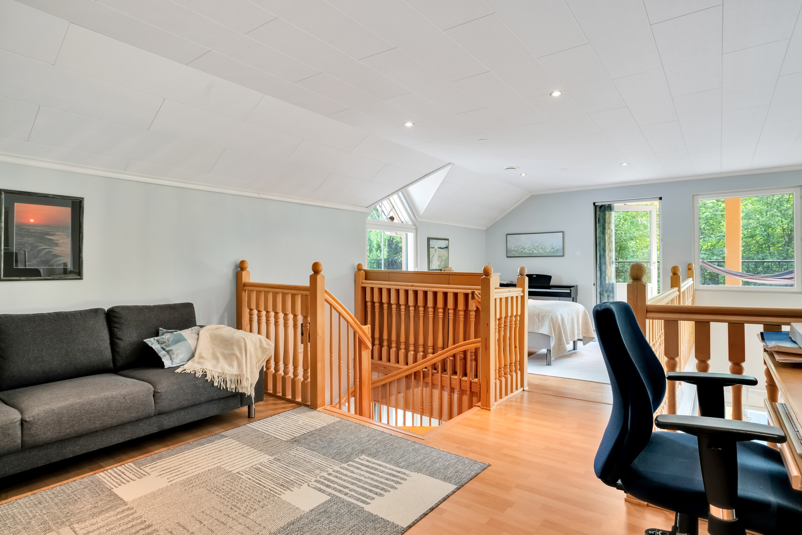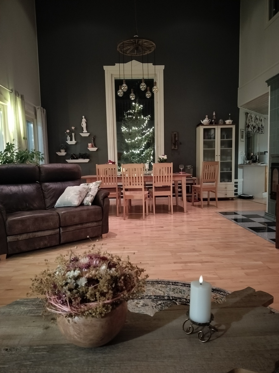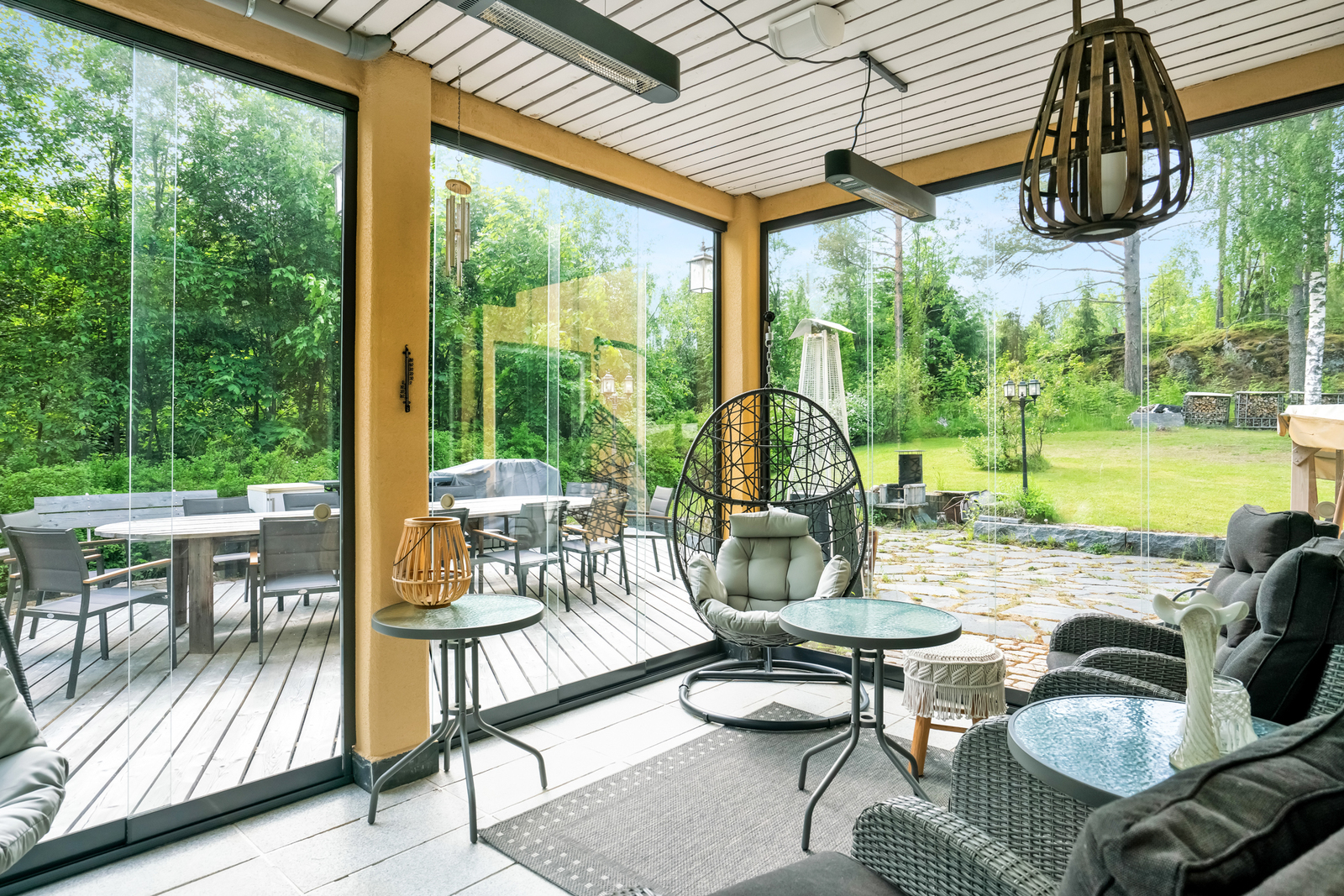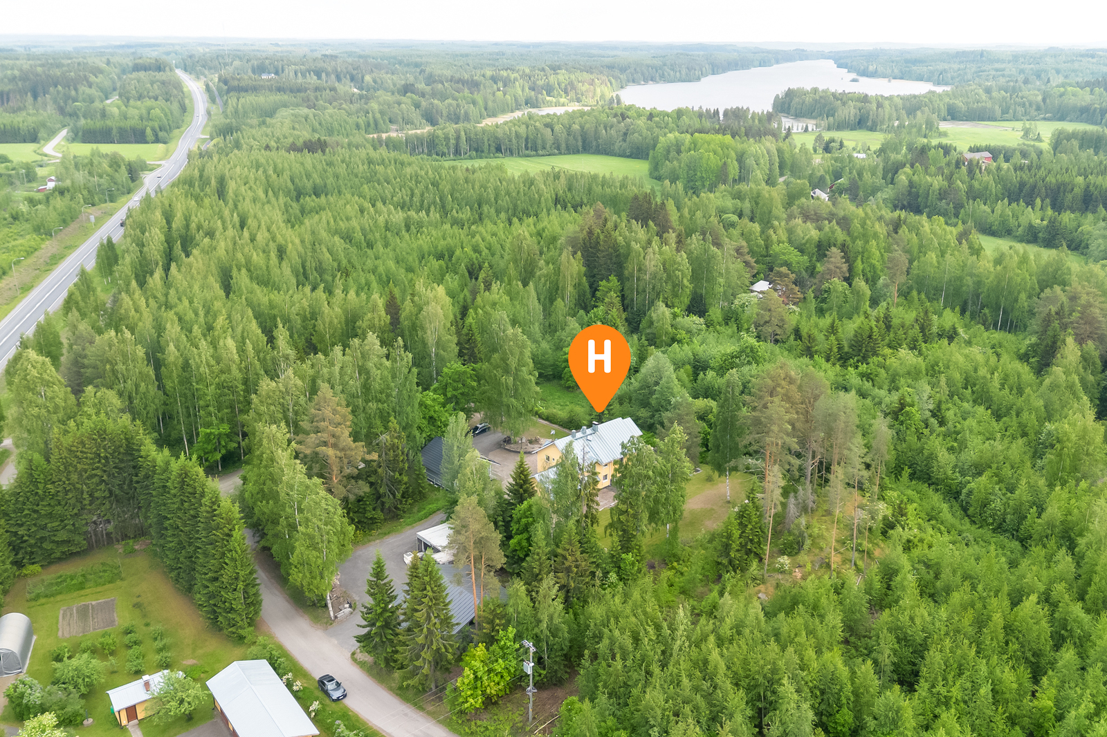 Asuinrakennuksen olohuoneessa on huonekorkeutta ruhtinaallisesti. Massiivisten ikkunoiden ansiosta luonnon valoa tulee vähän joka suunnasta. Saunatiloista löytyy puu-, sekä sähkökiuas. Rakennuksen maalämmössä myös viilennystoiminto kesähelteitä ajatellen. Asuinrakennuksen yhteydessä kahden auton katos. Majoitusrakennus myös maalämmössä, siellä lämpöpatterit, joissa on sähköinen puhallin. Majoitusrakennuksen kosteissa tiloissa sähkökaapeleilla lämmitys. Myös majoitusrakennuksessa viilennystoiminto, joka toimii radiaattoreiden (puhaltimien) kautta. Autotallirakennuksen lämmitys sähköllä, toteutettuna vesikiertoisella lattialämmityksellä ja valmius maalämmölle (kaivo jo olemassa). Koko tontilla on kolme maalämpökaivoa (omakotitalolla ja majoitusrakennuksella omat kaivot). Sähkönkulutus koko kiinteistöllä 32275,68 kWh/v ja tähän sisältyy myös talousrakennusten (mm. majoitusrakennuksen vuokraajien sähkönkäyttö) lämmittäminen. Sähkölaskujen kuluja pienentää suuri v. 2018 asennettu 17kW:n aurinkopaneelijärjestelmä. Puuta ei ole poltettu omakotitalossa kuin muutamia kertoja vuodessa tunnelman luomiseksi, joten sähkönkulutus ei todellakaan ole paljoa rakennusten kokoon ja käyttöasteeseen suhteutettuna.