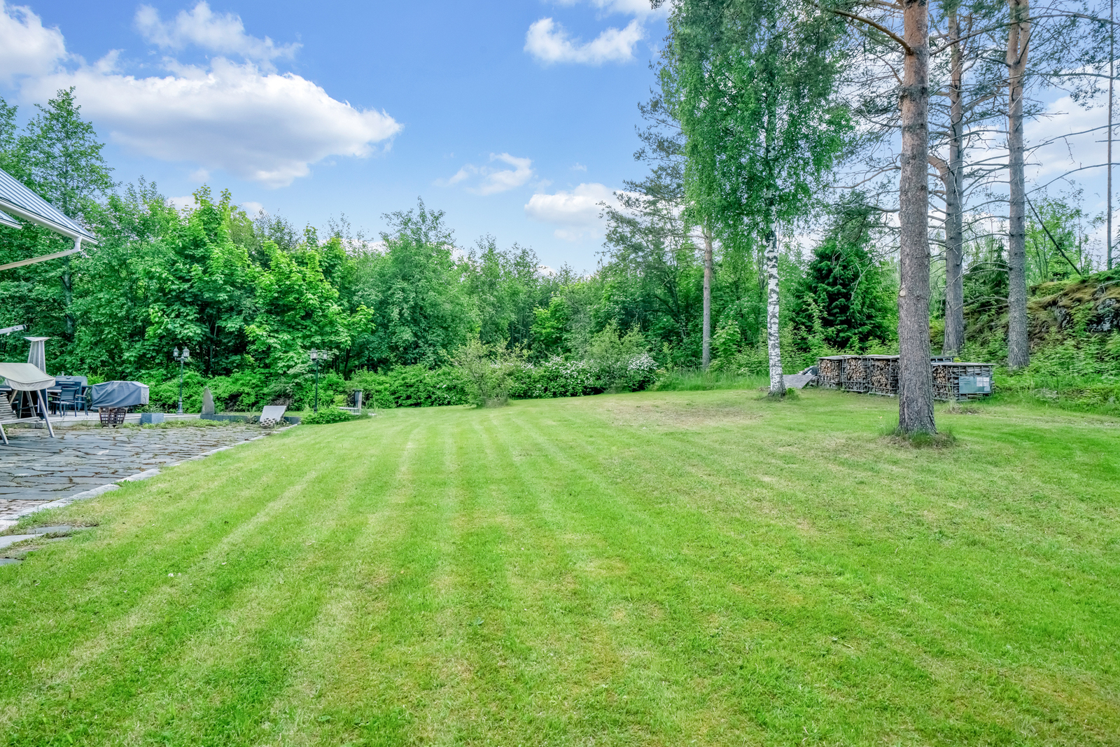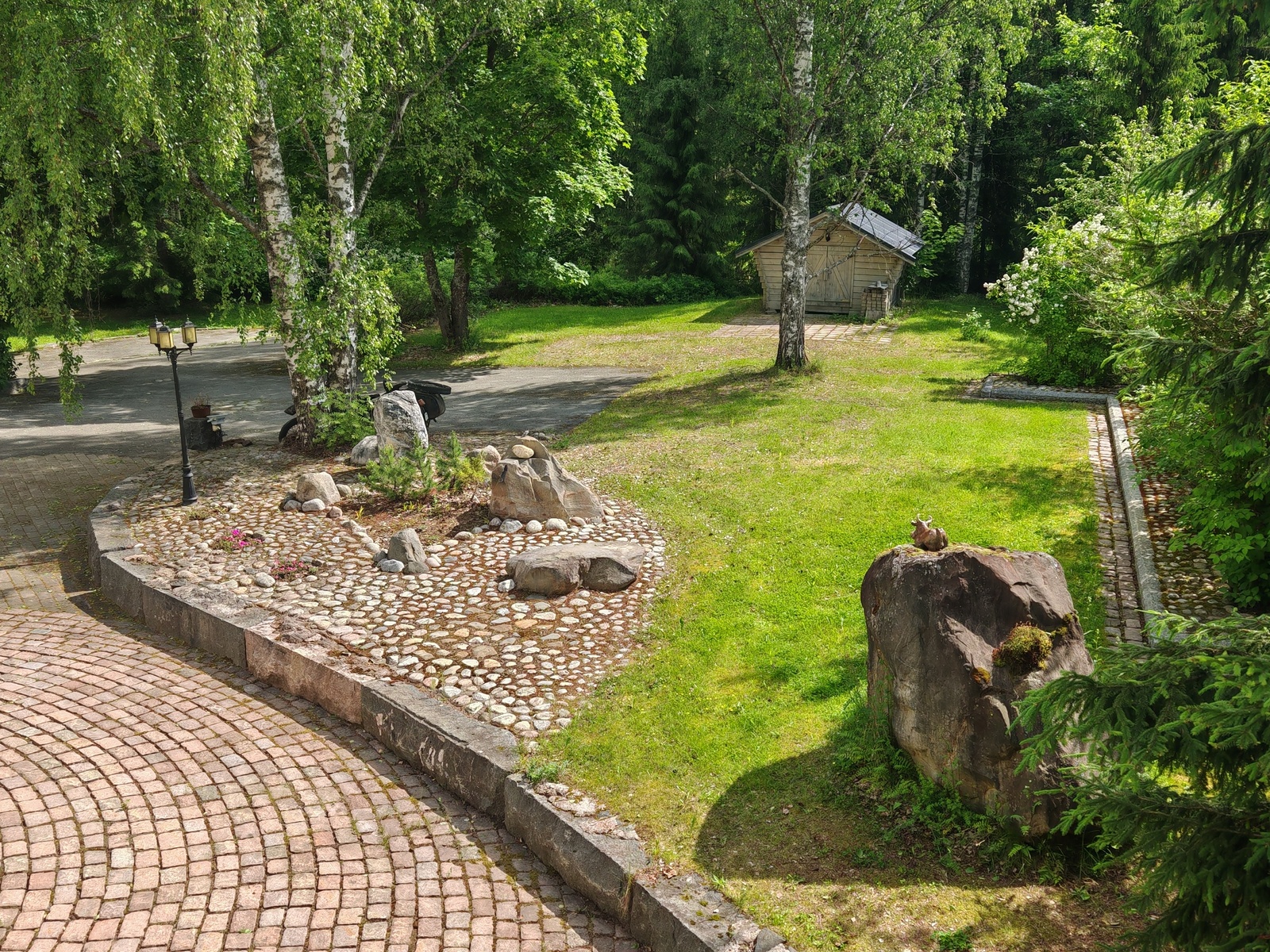 Piha-alueet on nurmetettu ja ajoväylät asfaltilla/betonilla/luonnonkivellä. Luonnonkivestä tehtyjä muureja runsaasti pihapiirissä ja pelkästään näiden arvo on jo tuhansia euroja. Alue on hyvin valaistu ja soveltuukin tämän takia loistavasti esim. yritystoiminnan pyörittämiseksi. Terassialue tehty lehtikuusesta ja luonnon kivestä.