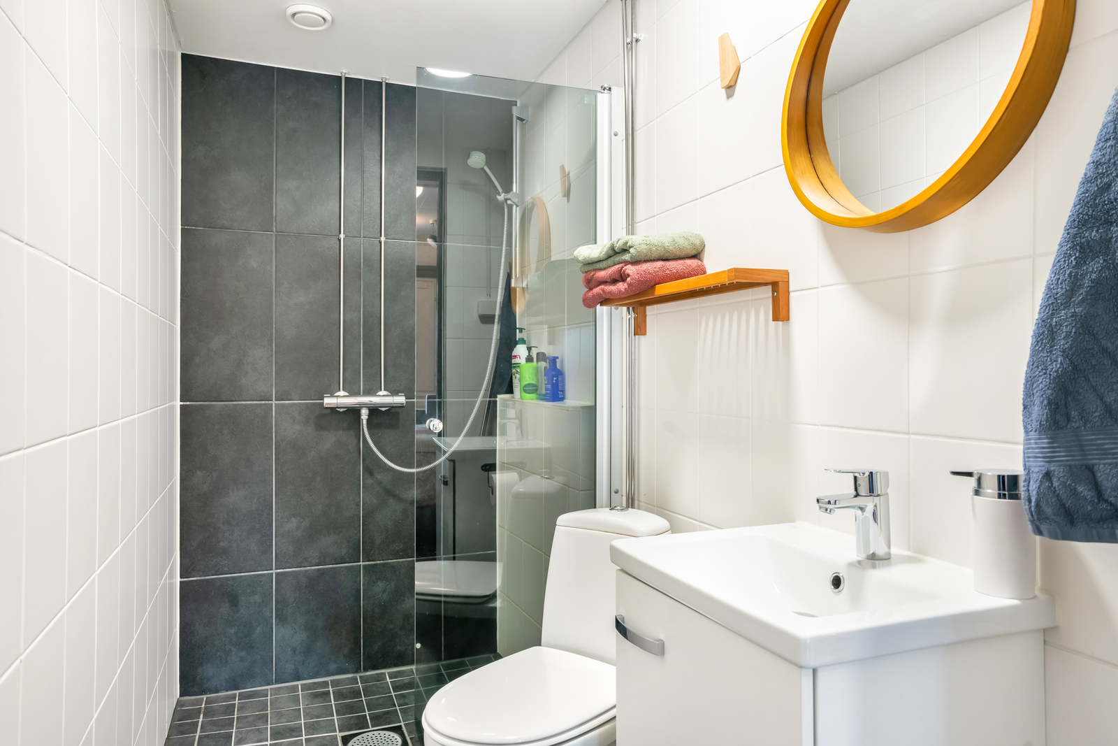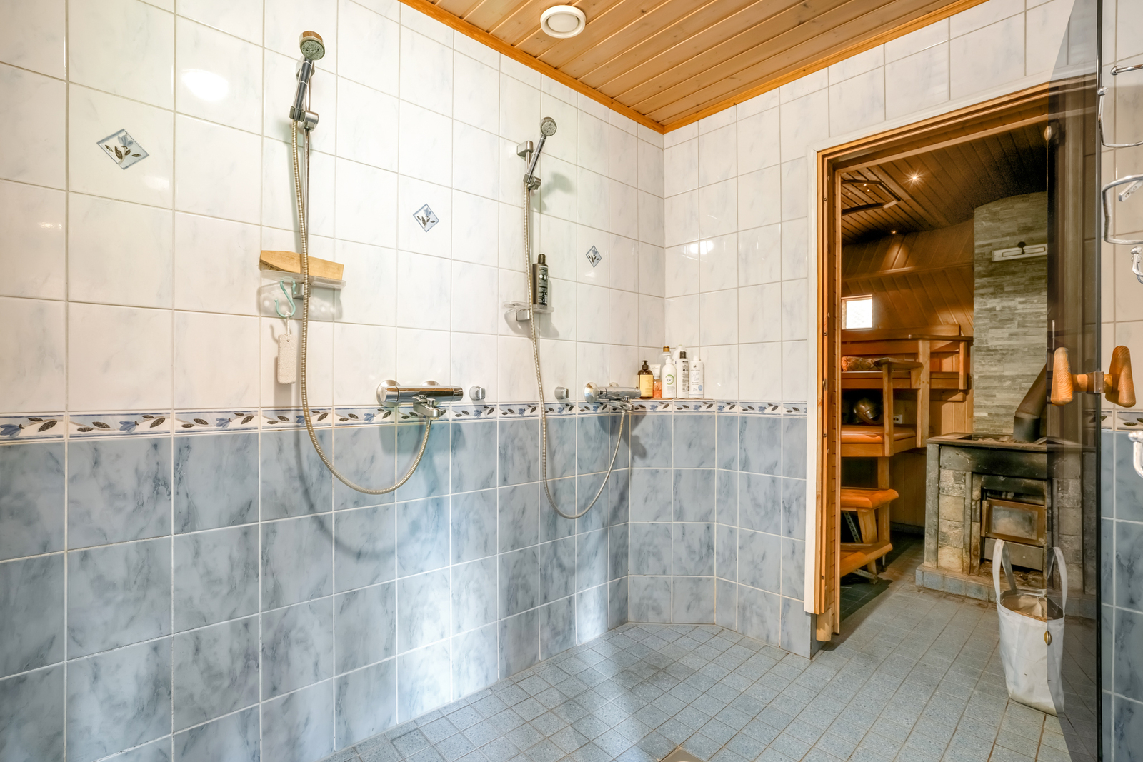 Suihku, lattialämmitys ja kiinteät valaisimet, asennettuja erikoisvarusteita, seinät (kaakeli), lattiat (laatta) |