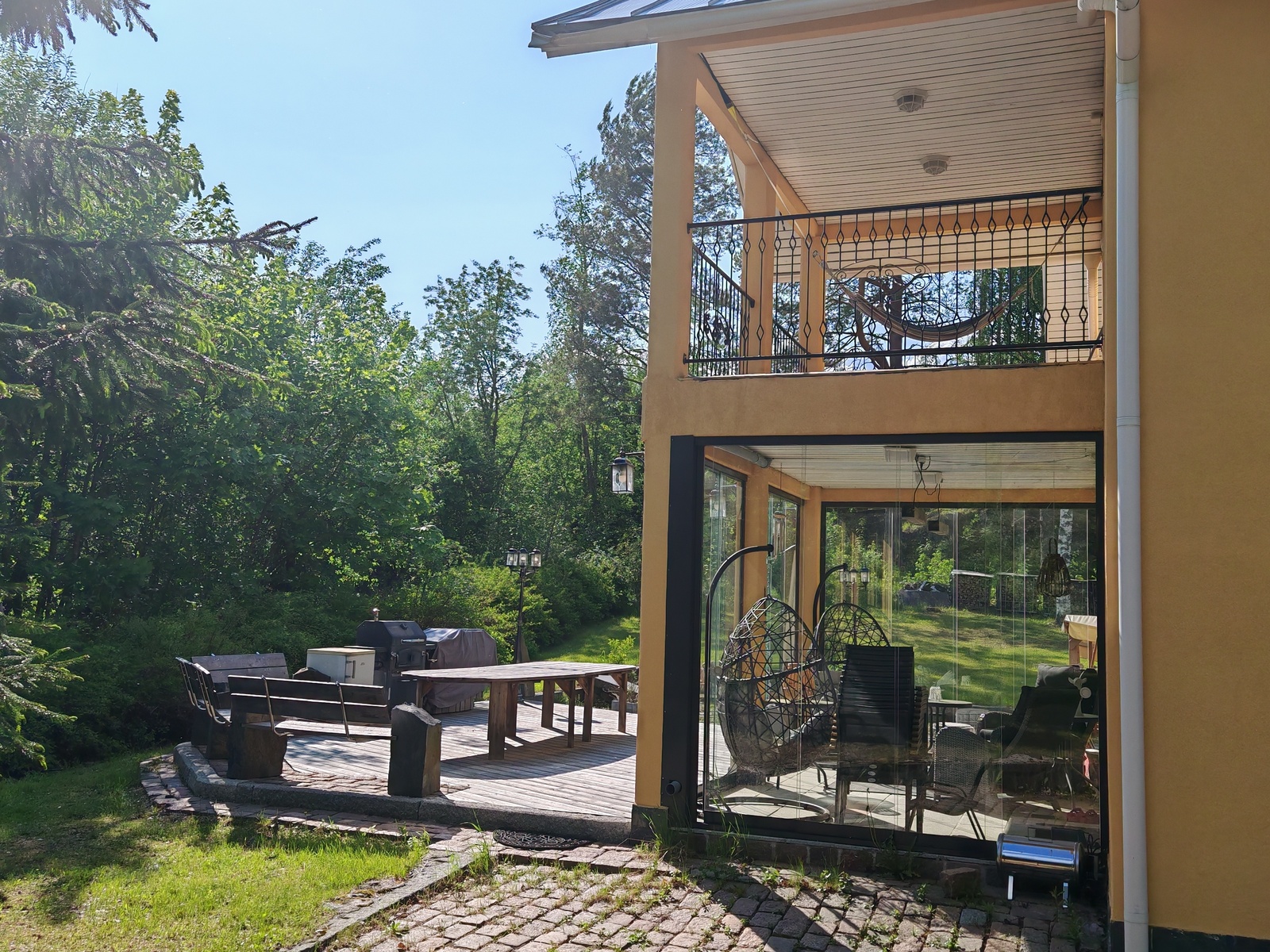 – rakennettu lehtikuusiterassi graniittisomistein, lisätty ulkovalaistusta, talon väri vaihdettu käyttäen silikaattipinnoitetta v. 2021