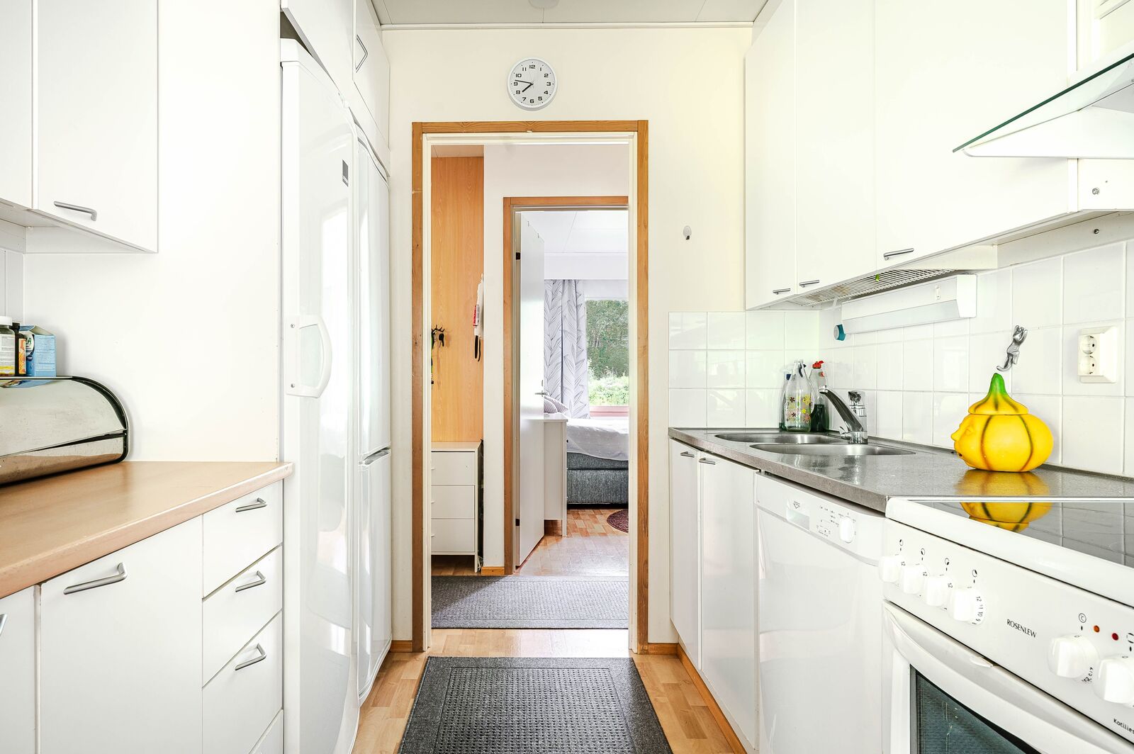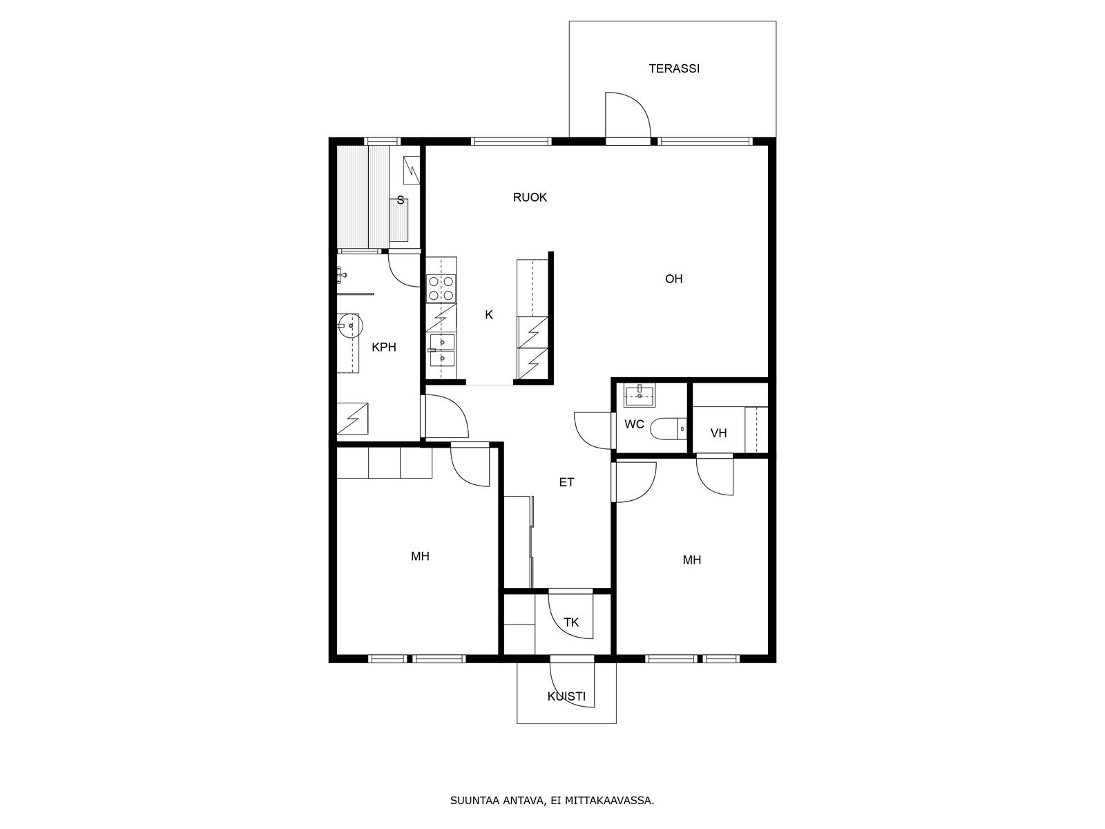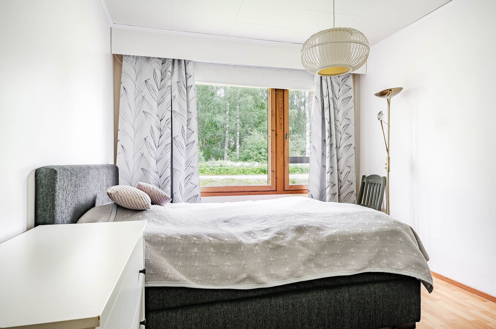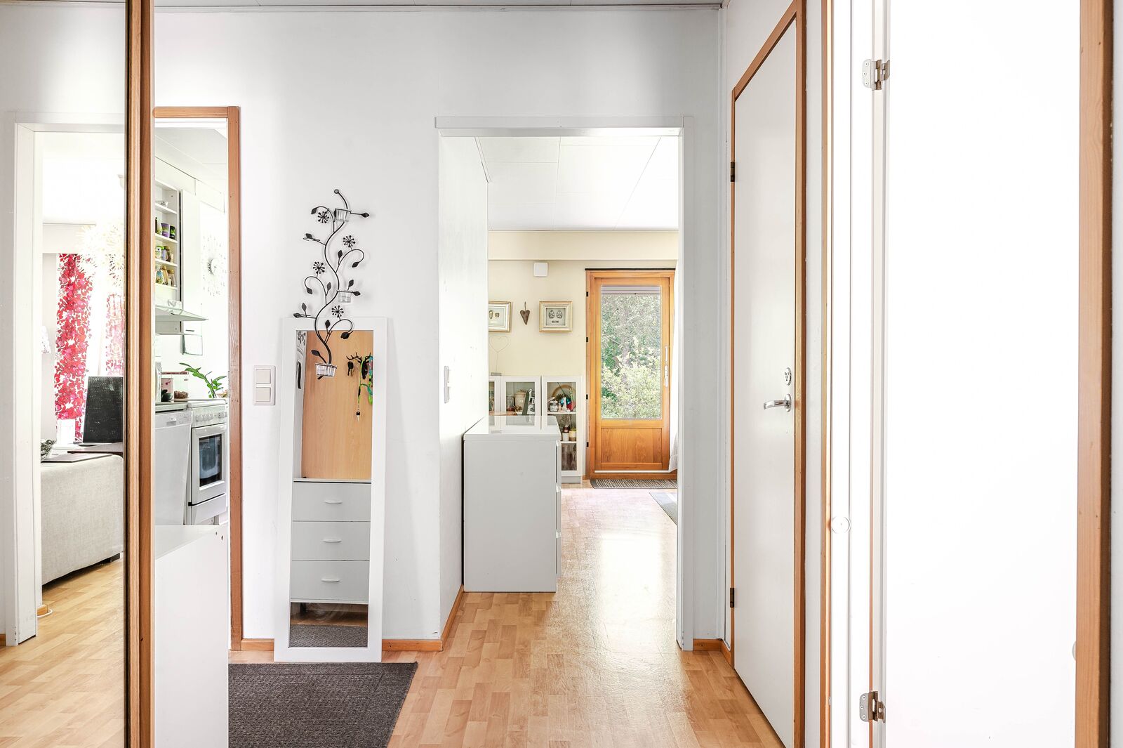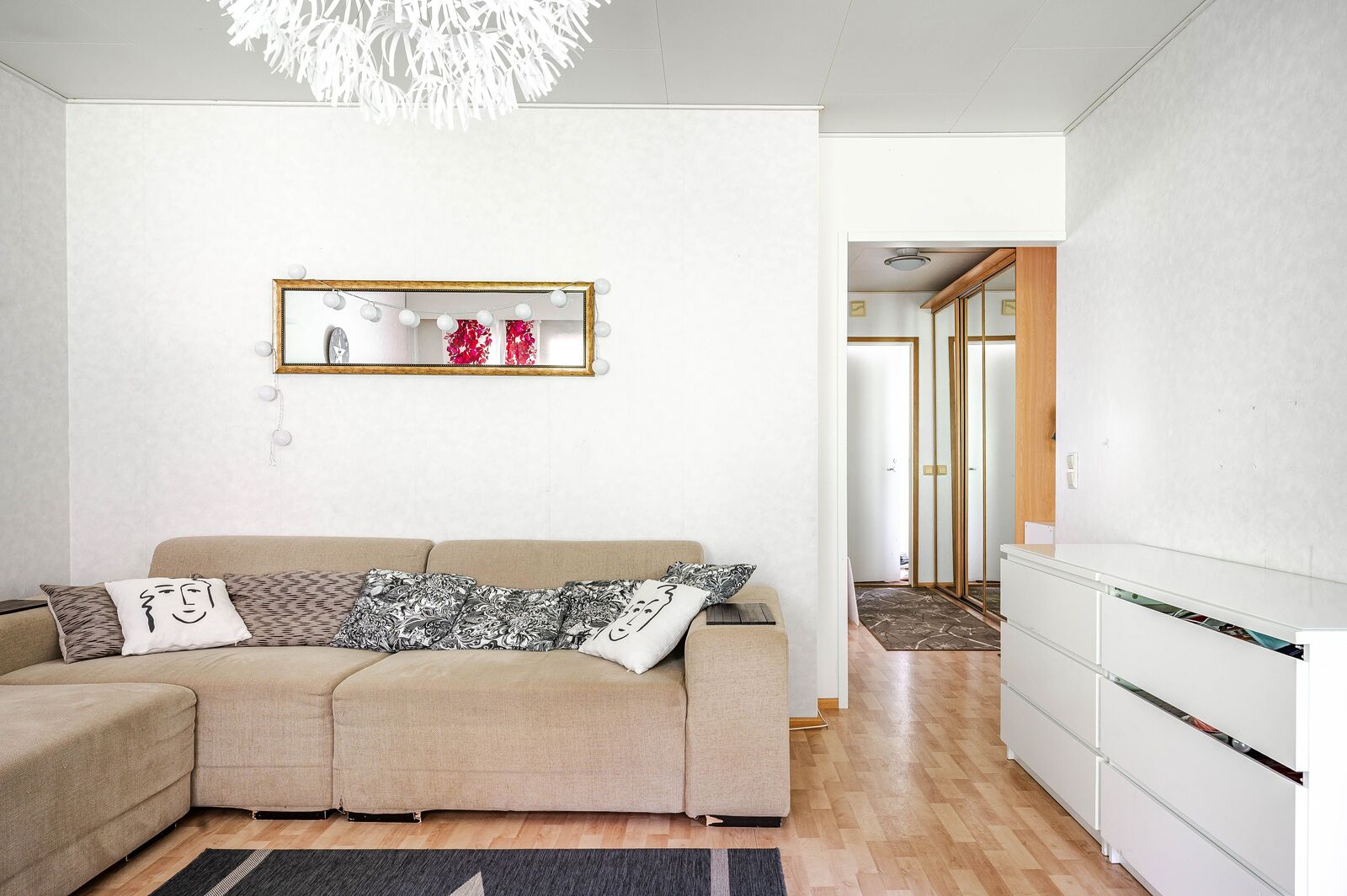 Asunnossa tilava olohuone, keittiö, kaksi makuuhuonetta, kylpyhuone, sauna ja erillinen wc.