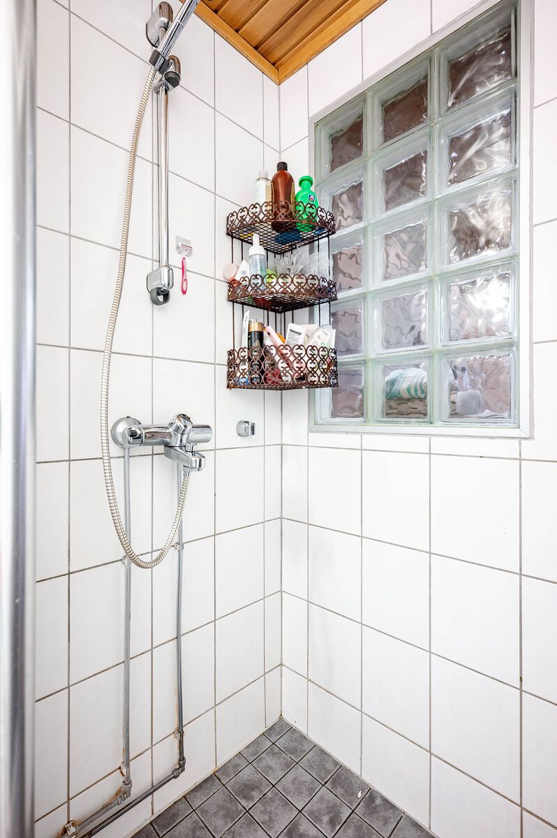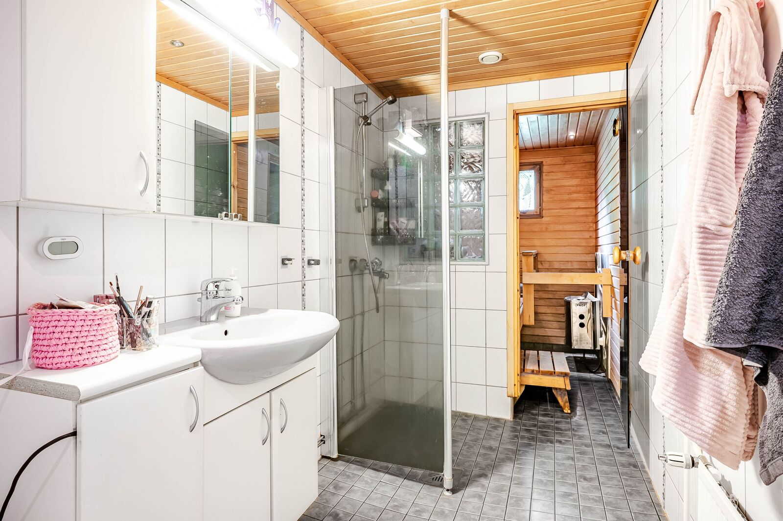 Suihku, suihkuseinä ja peilikaappi, seinät (kaakeli), lattiat (laatta) |