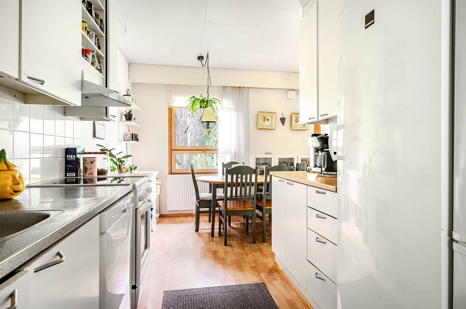 Asuinneliöt 78,5 m² tarjoaa paljon tilaa ja tässä rivitalokolmiossa on toimiva pohjaratkaisu ja suojaisalta pihalta käynti suoraan taloyhtiön leikkipaikalle. Asunnossa reilusti säilytystilaa, sekä lämmin häkkivarasto ylimääräisille tavaroille.