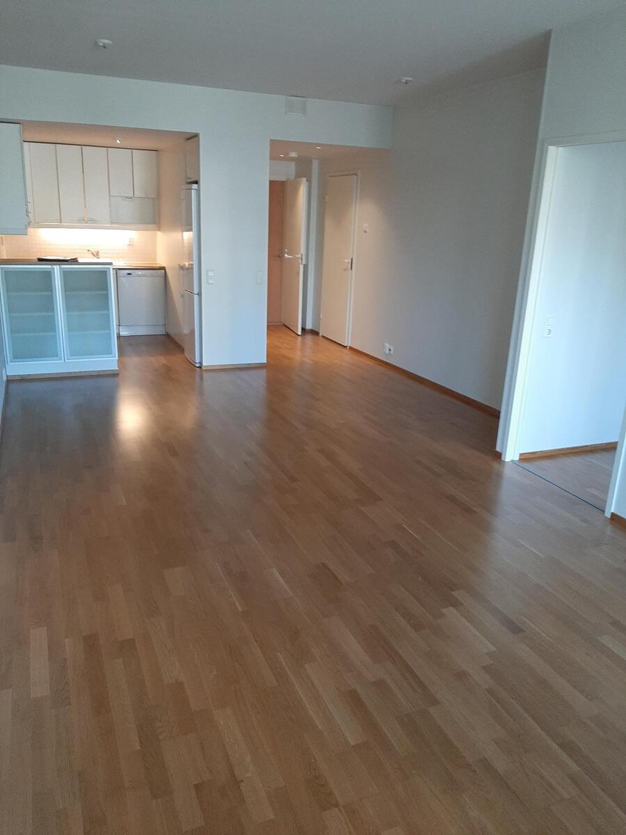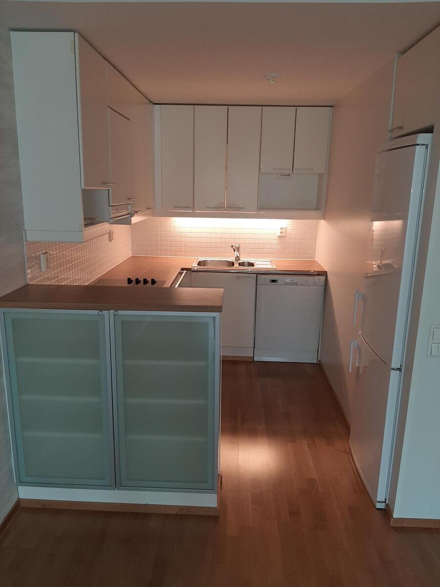 Liesi (Keraaminen liesi), seinät (maali), lattiat (parketti), astianpesukone, jääkaappipakastin, liesituuletin ja kiinteät valaisimet |