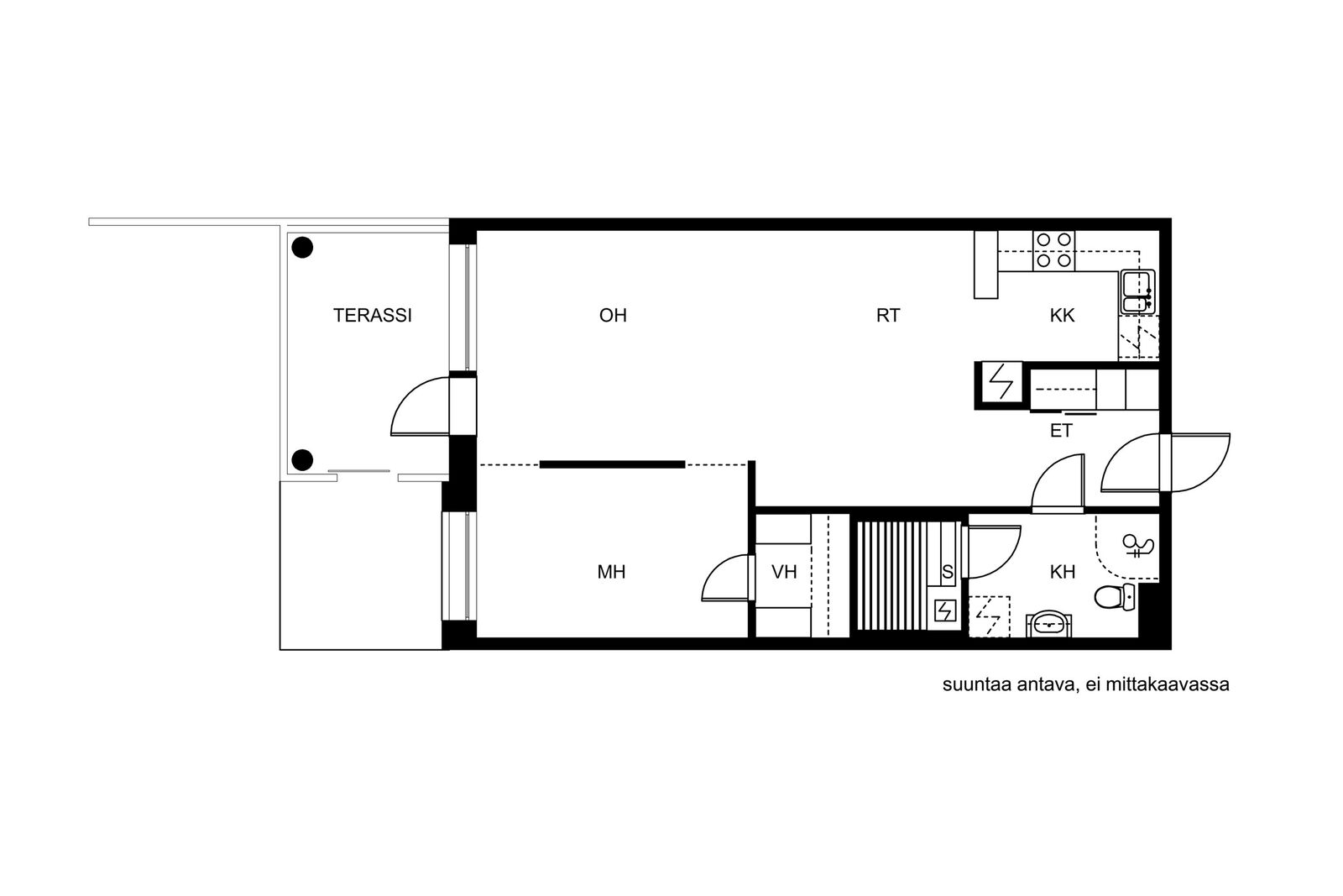 Kerhohuone 61,5m2, oloaula, väestönsuoja = verkkovarasto |