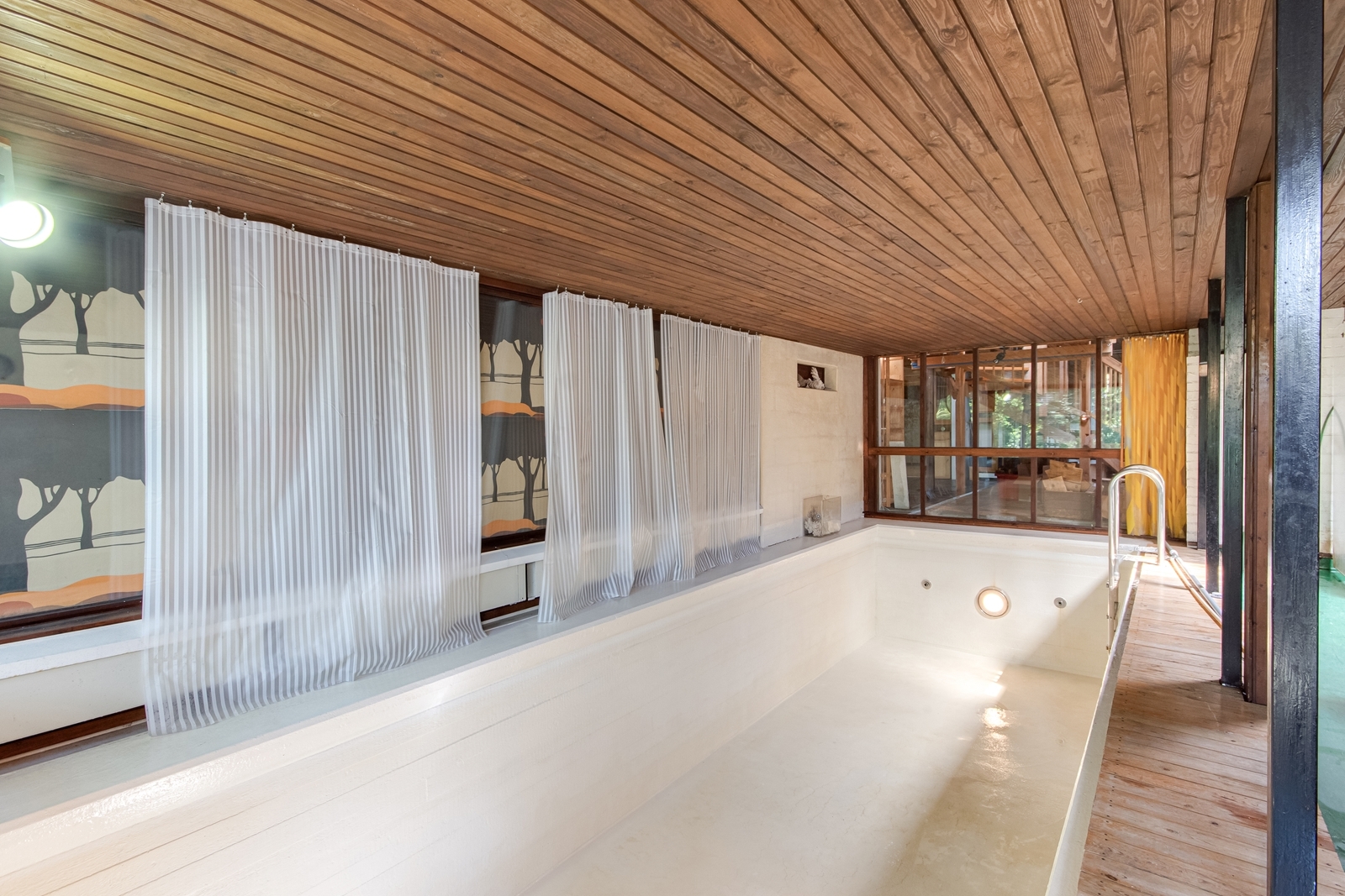 Koti jakautuu kahteen tasoon ja sisältää kuusi huonetta, joista kolme toimii makuuhuoneina. Kodin sydän on upea ja tilava saunaosasto, jossa on suuri uima-allas, tunnelmallinen hirsisauna, amme sekä erillinen wc. Allasosastolta pääsee suoraan ulos vilvoittelemaan – tällaisia kokonaisuuksia on harvoin tarjolla!