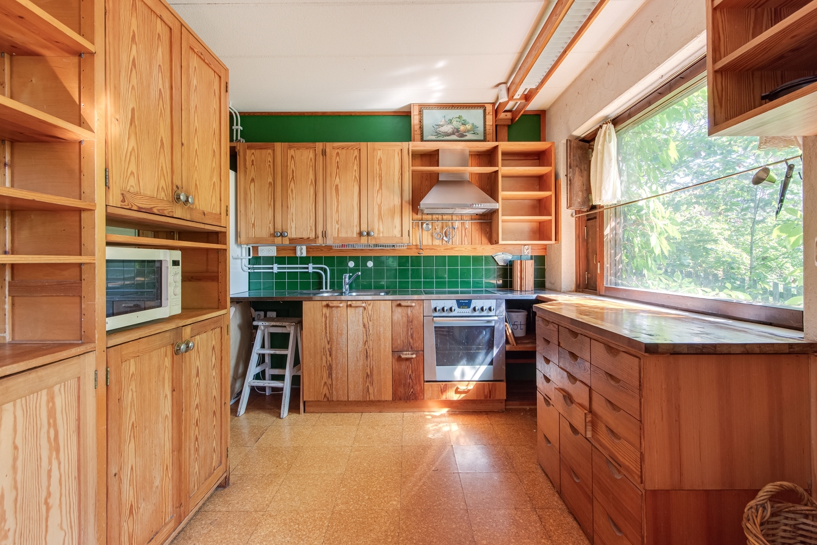 | Keittiön kuvaus | Liesi (Keraaminen liesi), seinät (laatta ja maali), lattiat (lauta ja korkki), jääkaappi ja liesituuletin / hormi, varattu paikka astianpesukoneelle, Keittiö vaatii uusimista Seinäpinnat: kivi, keittiön välitilassa kaakelia, maalattu seinä, Tiskikoneelle liitännät |