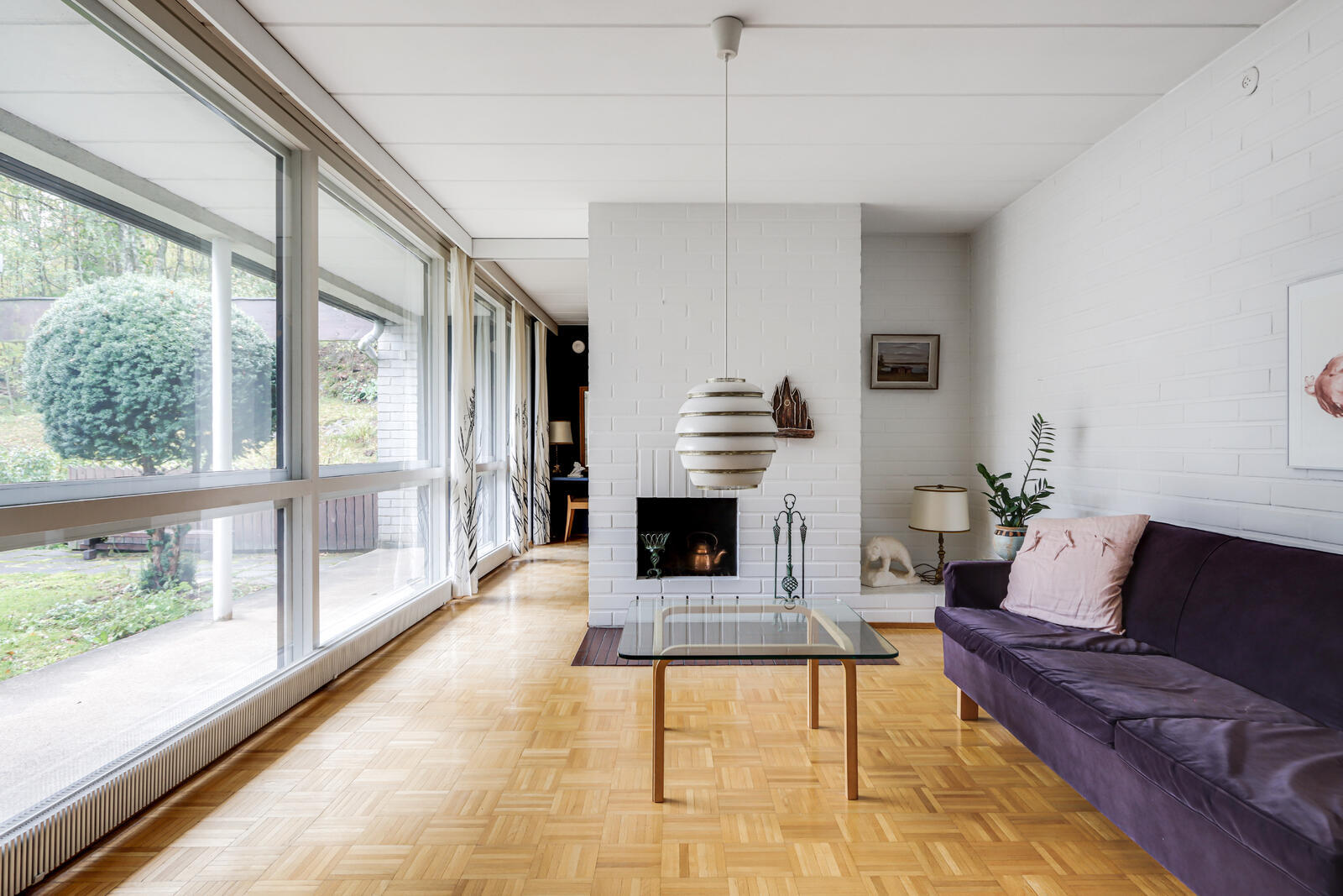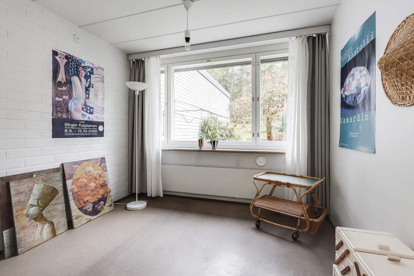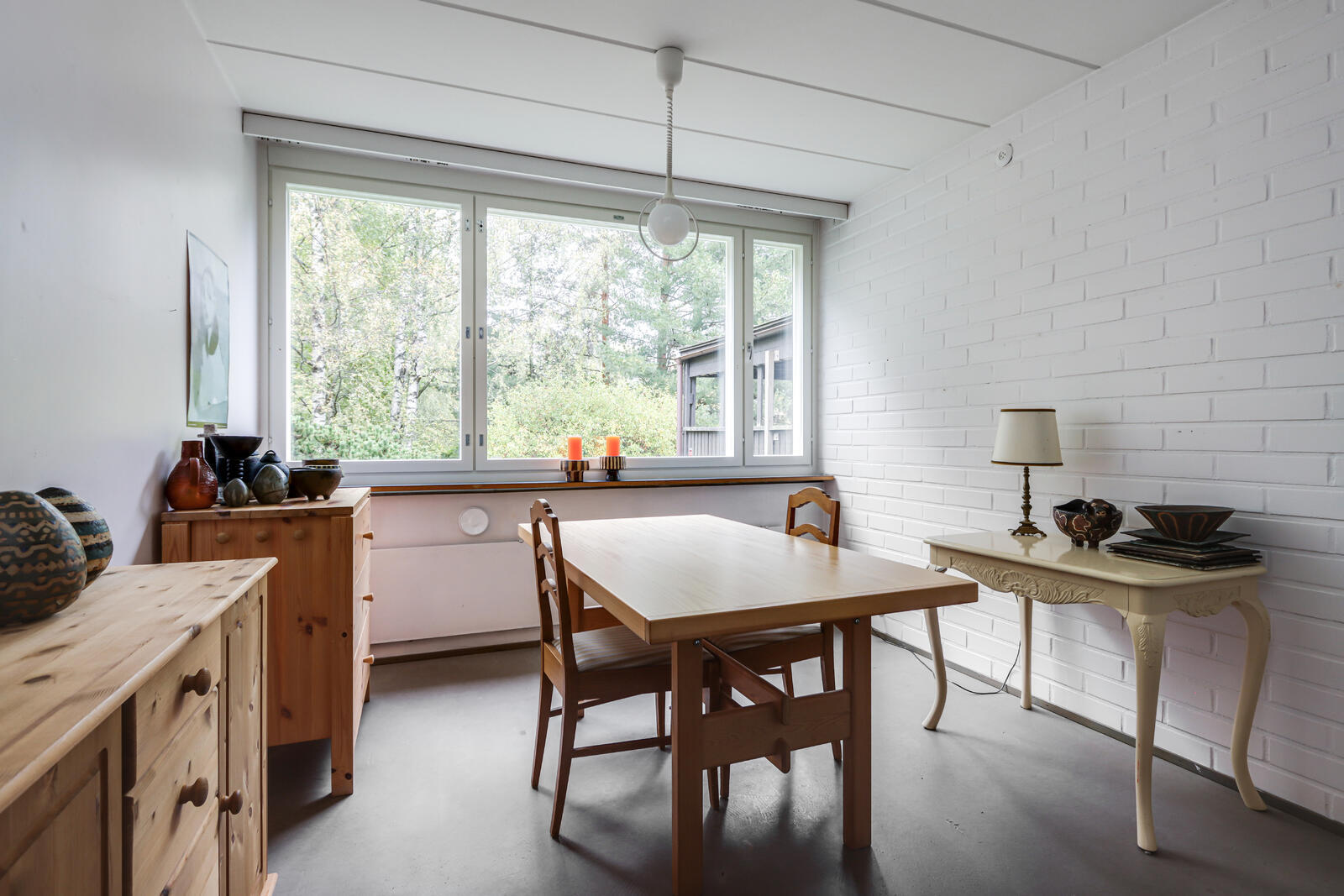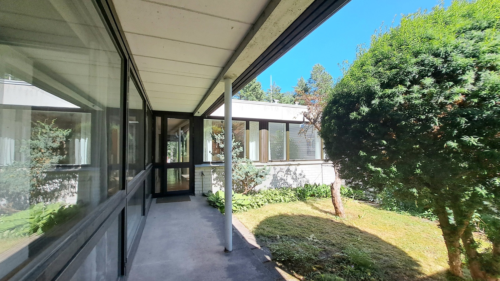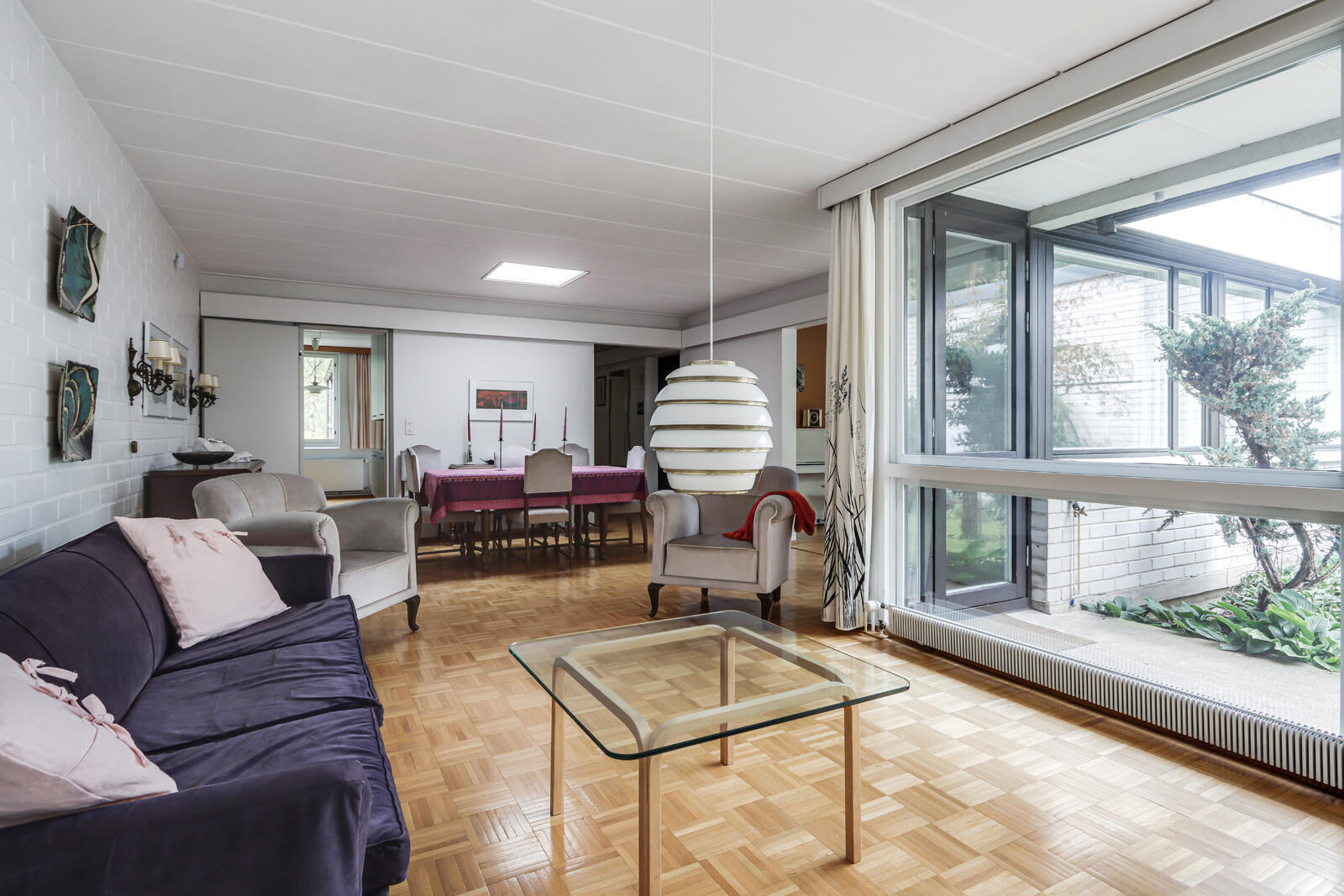 Viljo Revellin & Heikki Castrenin suunnittelema iso rivitaloyhtiö vuodelta 1969, tarjoaa loistavat mahdollisuudet suurenkin perheen tarpeisiin, tai upeaksi edustuskodiksi. Yläkerrassa on viisi huonetta ja avara olohuone, jonka yhteydessä on ruokailutila, avotakka ja ihastuttava atriumpiha. Tässä hyvin pidetyssä huoneistossa on asuttu pitkään ja siellä on säilynyt alkuperäinen tunnelma, koska sitä ei ole pilattu remonteilla, jotka eivät ehkä olisi sopineet talon aikakauteen ja arkkitehtuuriin.