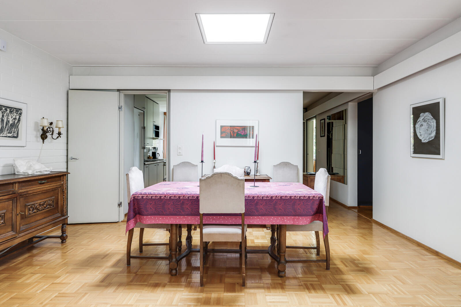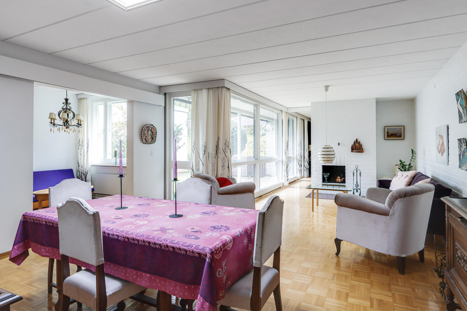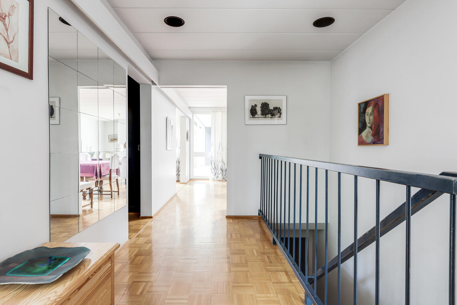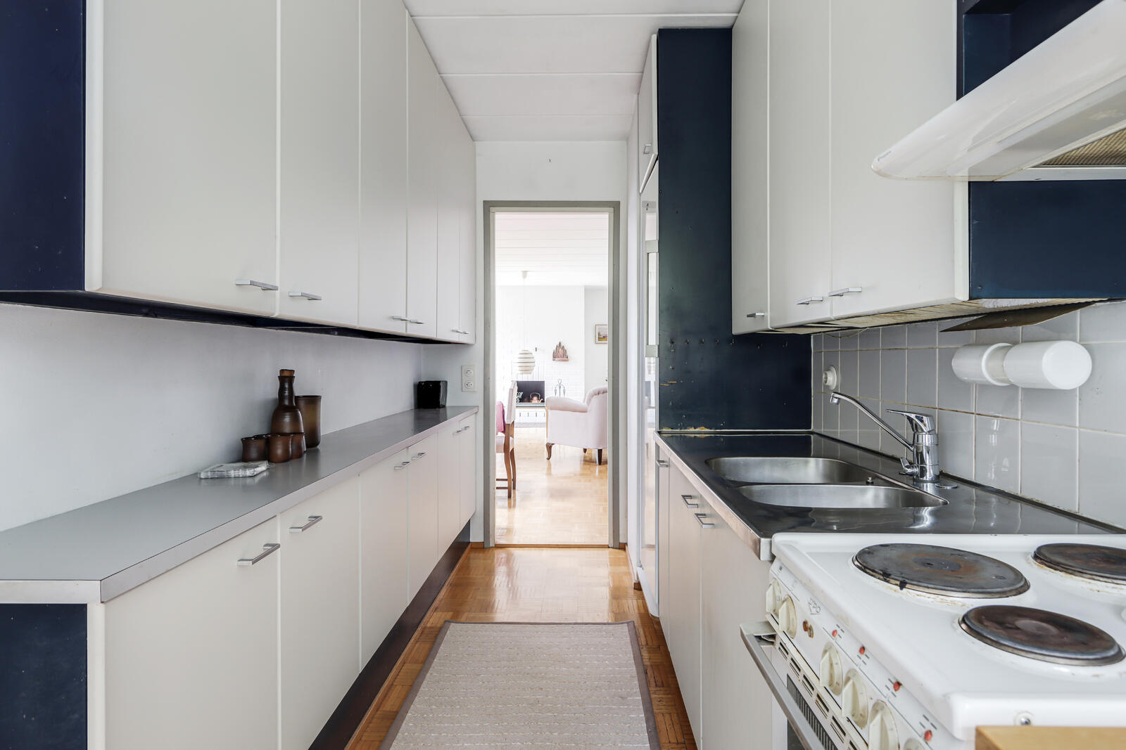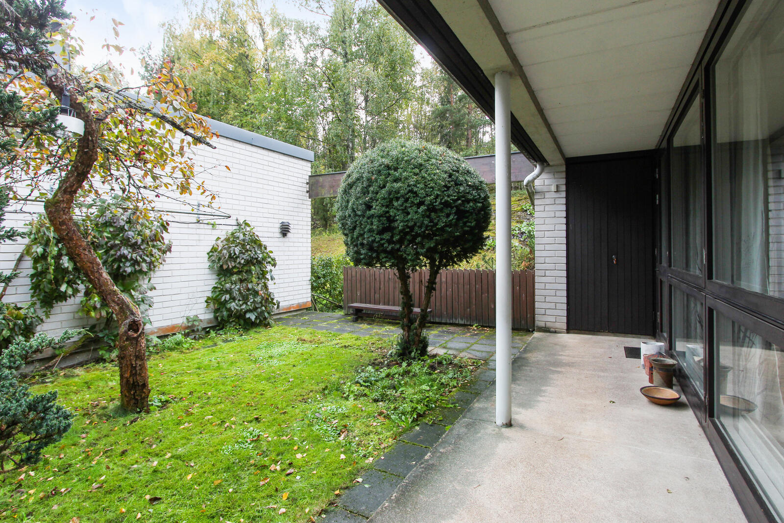 Viljo Revellin & Heikki Castrenin suunnittelema iso rivitaloyhtiö vuodelta 1969, tarjoaa loistavat mahdollisuudet suurenkin perheen tarpeisiin, tai upeaksi edustuskodiksi. Yläkerrassa on viisi huonetta ja avara olohuone, jonka yhteydessä on ruokailutila, avotakka ja ihastuttava atriumpiha. Tässä hyvin pidetyssä huoneistossa on asuttu pitkään ja siellä on säilynyt alkuperäinen tunnelma, koska sitä ei ole pilattu remonteilla, jotka eivät ehkä olisi sopineet talon aikakauteen ja arkkitehtuuriin.