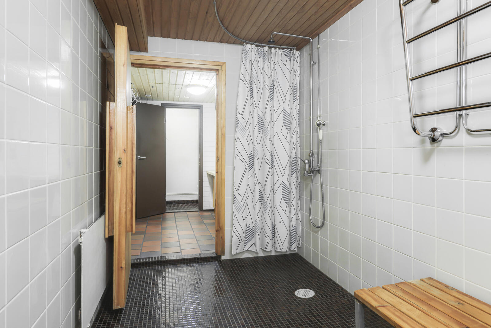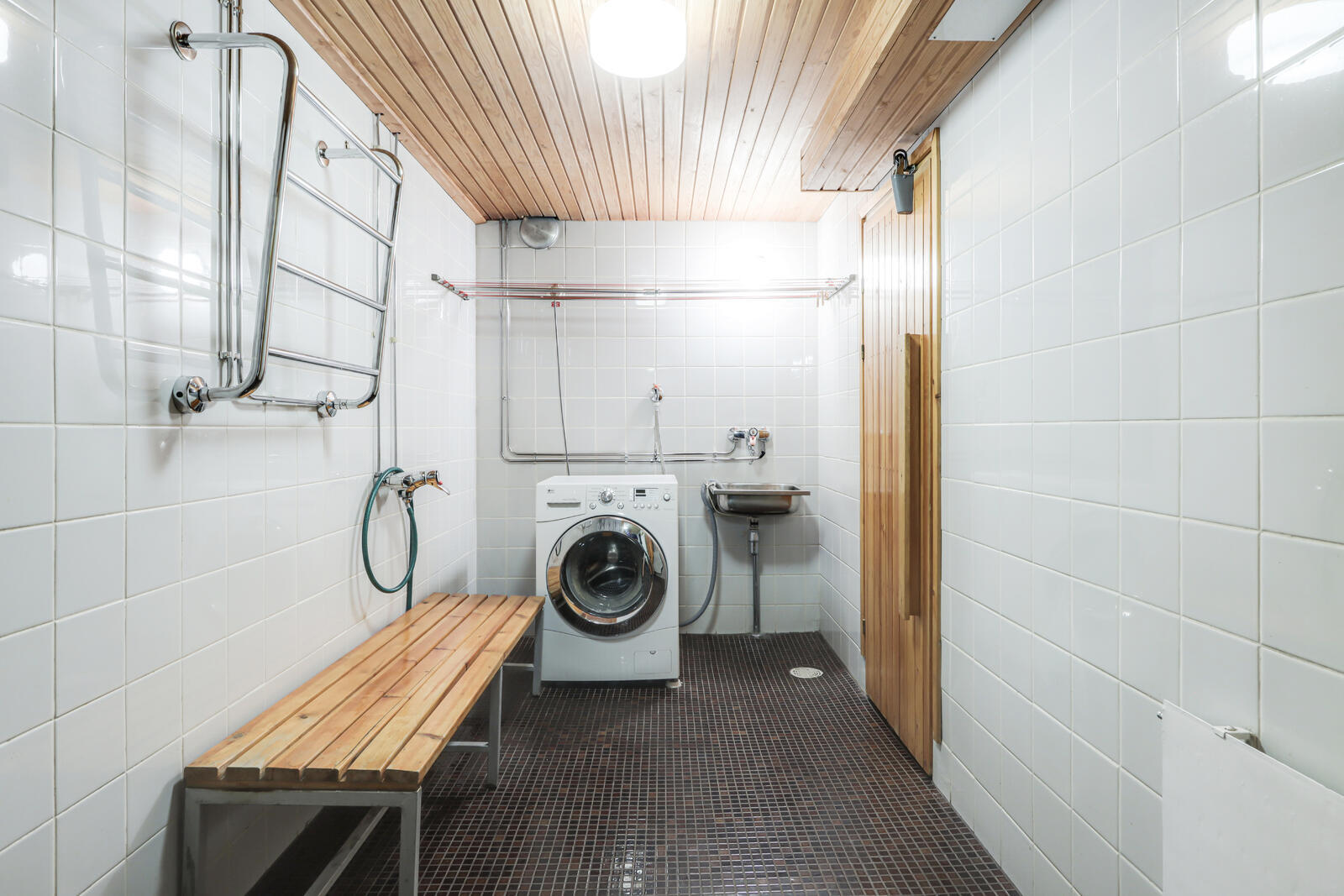 | Saunan kuvaus | Sähkökiuas, seinät: paneloitu, lauteet, lattia: laatoitettu, saunan pesuhuone: seinät: kaakeloitu 1/1, lattia: laatoitettu, suihku, pesukone, pesukoneliitäntä, 3 vesipistettä, 2 lattiakaivoa, vesikiertoinen pyyheliinapatteri. HUOM! Saunaosasto: saunan höyrysulut ja pesuhuoneen laatoitukset ja vedeneristeet eivät täytä nykynormeja. Myyjä on teettänyt ennen myynnin alkua kosteusmittauksen, jossa todettiin että kaikki pinnat ovat kuivia ja myyjä suosittelee, että ostaja tutkituttaa/ saneeraa alakerran märkätilat nykyvaatimustasoa vastaaviksi ennen niiden käyttöönottoa. Myyjät eivät vastaa kosteusvaurioista, jotka syntyvät, mikäli ostaja alkaa käyttää märkätiloja niiden nykykunnossa. |
