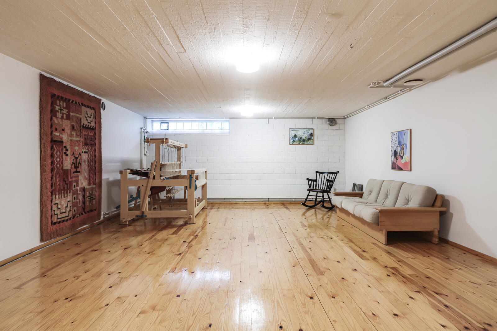 Alakerrassa on 108,5 neliötä tilaa luoda unelmiesi spa-saunaosasto ja suuren monitoimihuoneen voit muokata toiveidesi mukaiseen käyttöön, esim. kuntosaliksi. Tällä hetkellä tilassa on kangaspuut, jotka kuuluvat kauppaan, kuten yläkerran pianokin, jos ostaja niin haluaa.