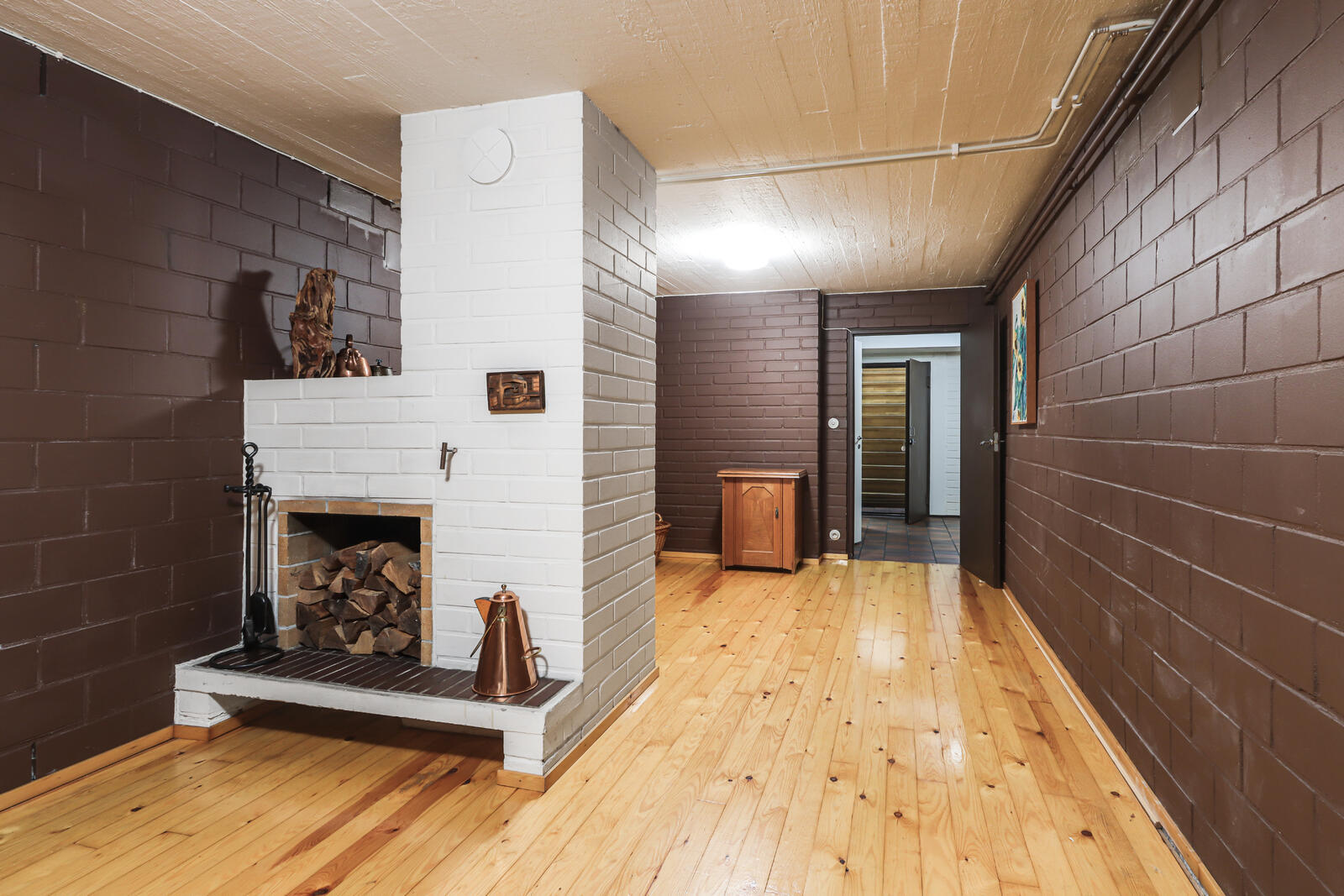 | Tilojen kuvaus | Alakerran monitoimihuone ja vaatehuone: lattia: lakattu lautalattia, seinät: maalattu, vaatehuoneessa puuhyllyt, kylmäkellari ( koneet poistettu) lattia: muovimatto, puuhyllyt, teräsovi, ala-aula ja pukuhuone: lattia: klinkkeri, seinät: maalattu, alakerran takkahuone:lattia lattia: lakattu lauta |