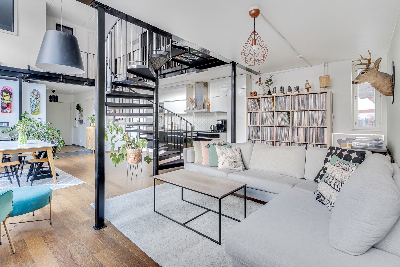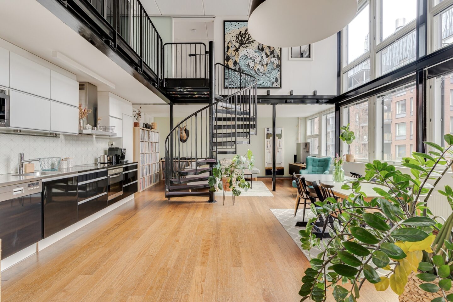 Uniikki kaksikerroksinen loft-asunto meren äärellä.
