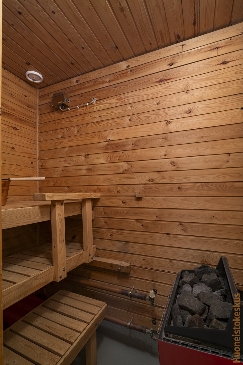 | Saunan kuvaus | Seinät (paneeli), lattiat (betoni), Sähkökiuas, Saunassa maalattu betonilattia. |