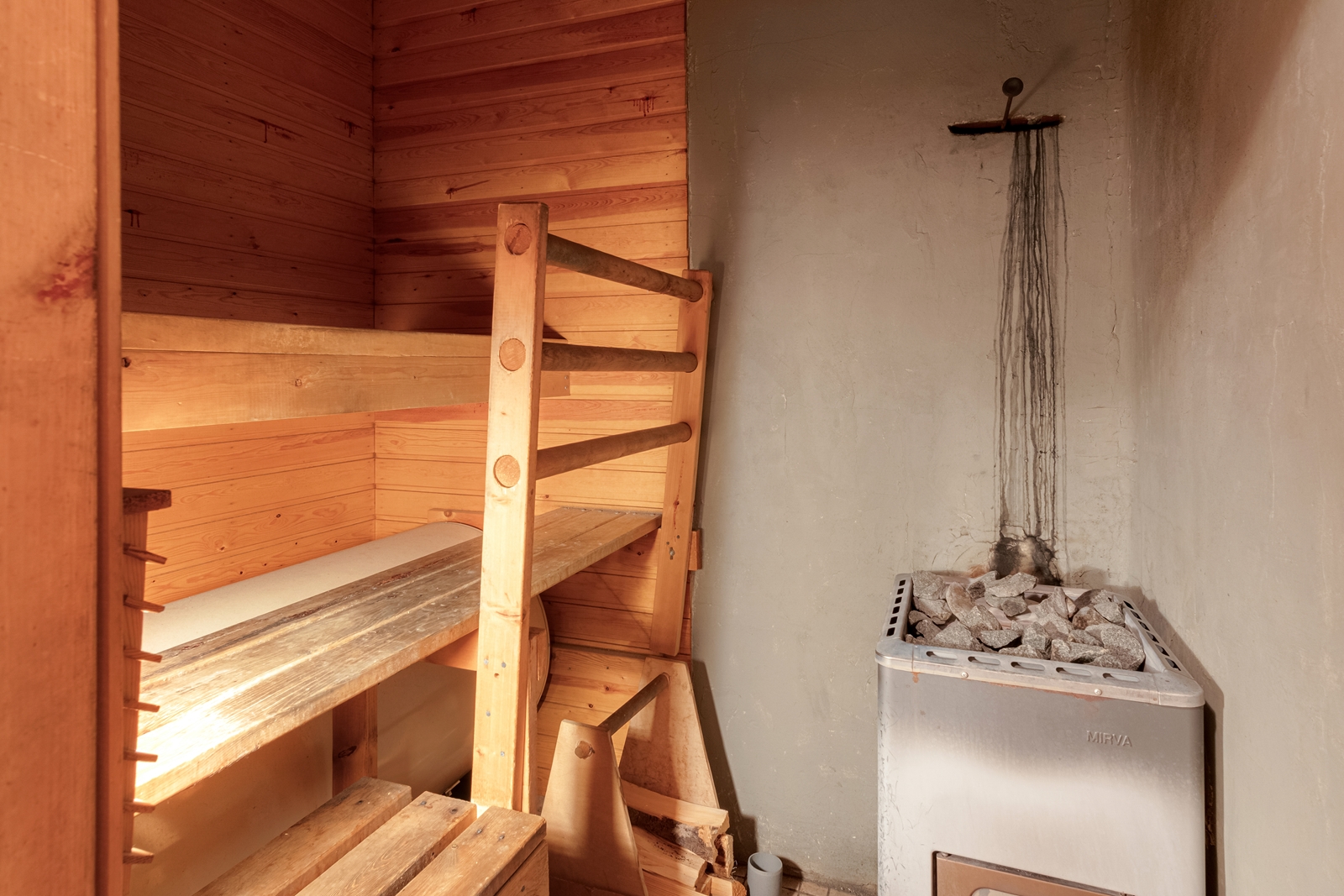 | Saunan kuvaus | Seinät (puu), lattiat (laatta), Puukiuas, Varaus olemassa myös sähkökiukaalle rakennusajalta |