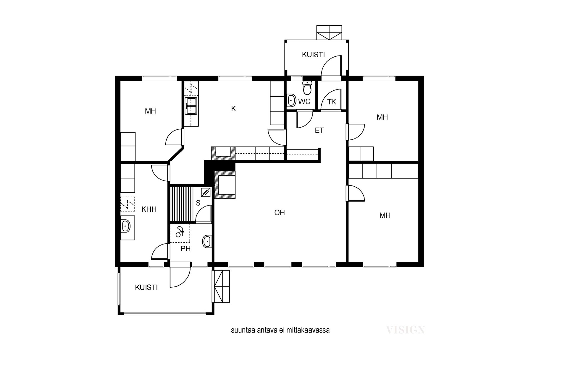 | Huoneistoselitelmä | 4h+keittiö+pesuhuone+sauna+erillinen wc |