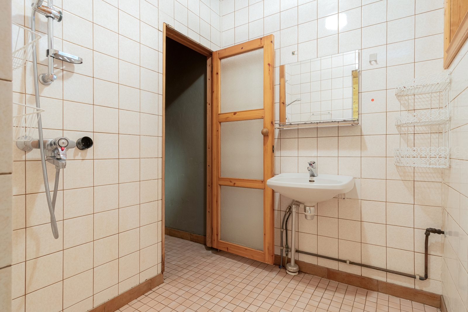 | Kylpyhuoneen kuvaus | Suihku ja kiinteät valaisimet, seinät (kaakeli), lattiat (laatta) |