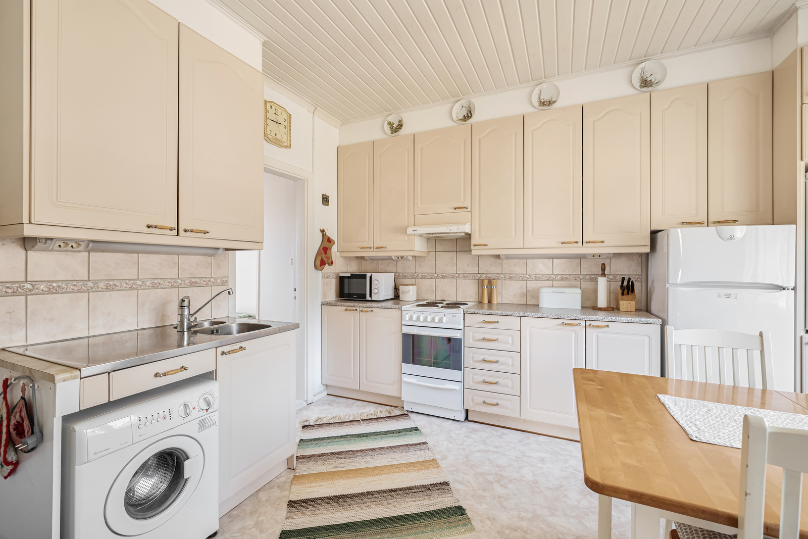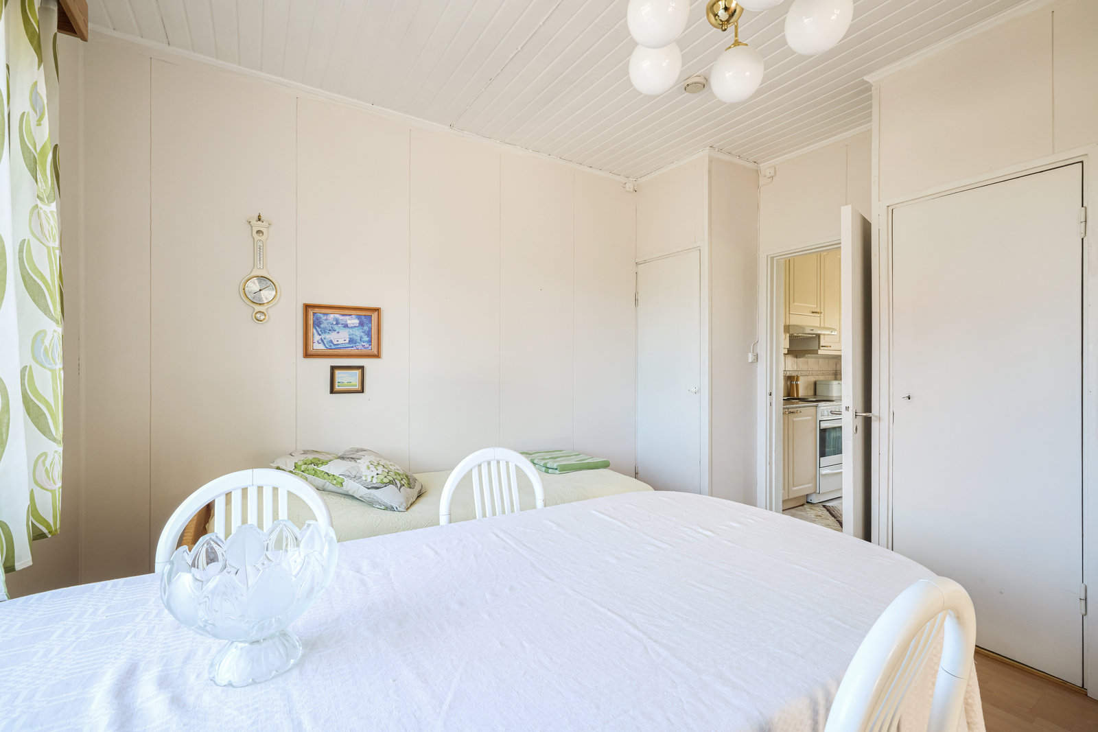 Tervetuloa tutustumaan tähän vuonna 1952 valmistuneeseen, perinteiseen rintamamiestaloon, joka sijaitsee viihtyisällä Väkkärän alueella Kuusankoskella. Tässä kodissa on kolme makuuhuonetta. Suoran sähkölämmityksen lisäksi talossa on neljä erillistä tulipesää, joita käytetty ahkerasti. Oma tasamaatontti tarjoaa tilaa harrastuksille, puutarhanhoidolle tai vaikkapa lasten leikeille. Piharakennuksessa on puulämmitteinen sauna.