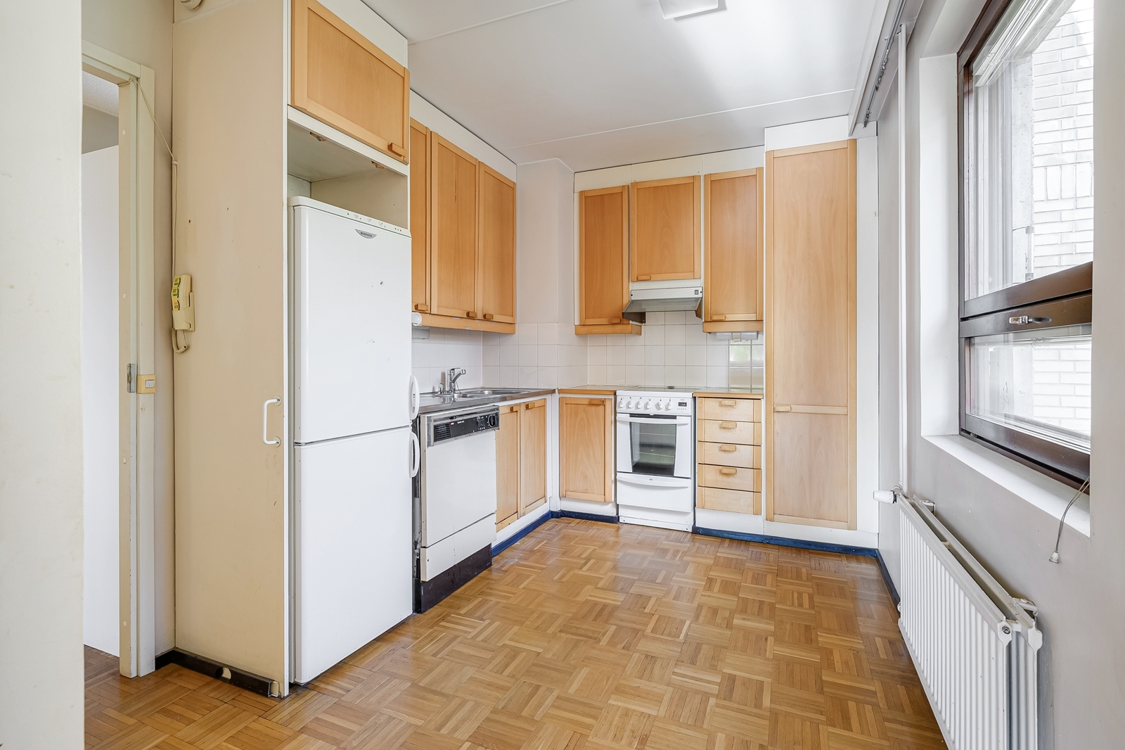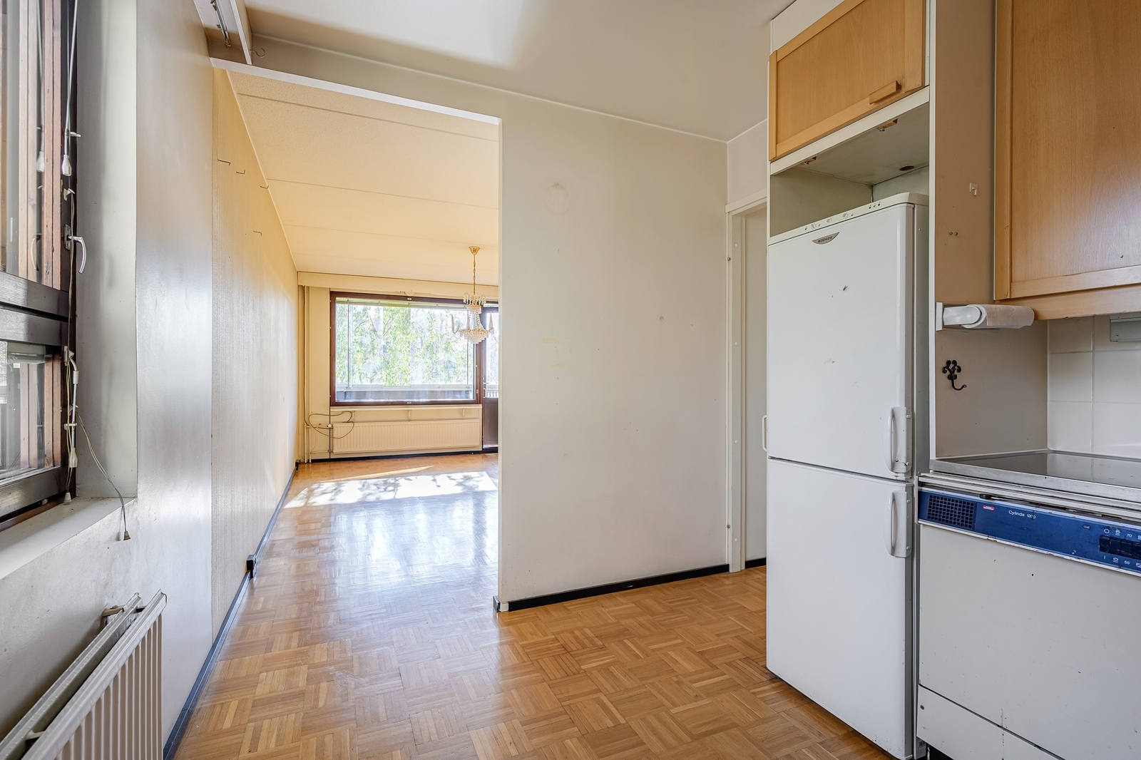 | Keittiön kuvaus | Liesi (Sähköhella), työtasot (laminaatti ja metalli), seinät (maali), lattiat (parketti), astianpesukone (toimivuudesta ei tietoa), jääkaappipakastin (toimivuudesta ei tietoa), liesi ja liesituuletin |